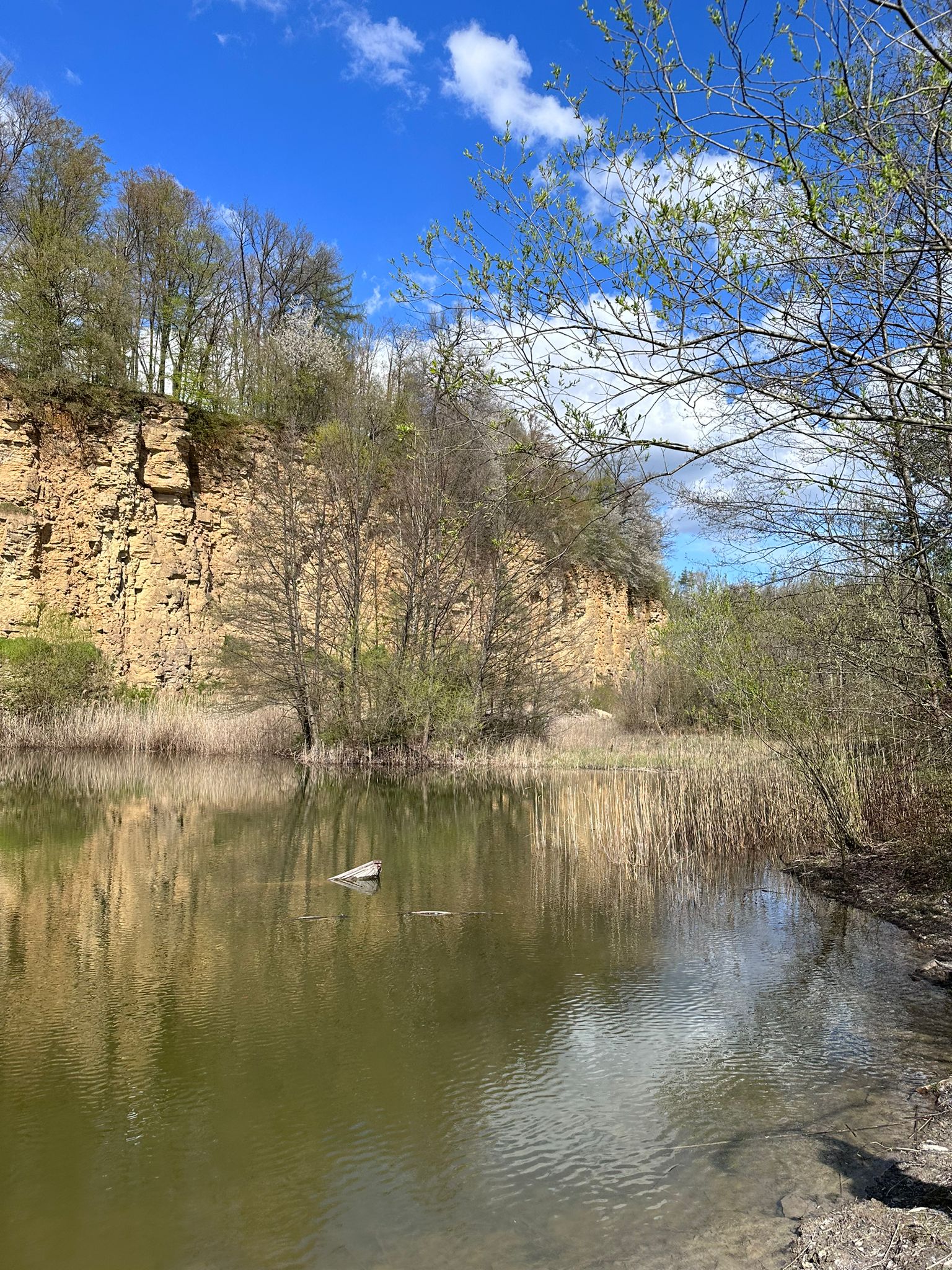Entstanden ist das heutige Natur- und Kulturdenkmal mit seiner artenreichen Flora und Fauna durch den bis 1978 andauernden Gesteinsabbau. Im ehemaligen Steinbruch wurden durch verschiedene Unternehmer zuerst Bleierz und anschließend Mauersteine abgebaut. 1977 wurde der Steinbruch stillgelegt und das Areal wurde zum Naturschutzgebiet erklärt. Der Abbau hinterließ eine Steinbruchbrache von 9,79 Hektar Fläche mit einem bis zu 30 Meter tiefen Felshang. In der Grube sammelte sich Wasser zum Kallenbergsee, der sich zu einem Sekundärbiotop entwickelte. Dieser wurde befischt und gereinigt, es entstanden in der Folge sowohl ein Feucht- als auch ein Trockenbiotop. 1985 wurde ein Teil des großen Areals als flächenhaftes Naturdenkmal ausgewiesen, welches 1989 nochmal erweitert und zum Naturschutzgebiet erklärt wurde. Außer dem Steinbruch mit Kallenbergsee liegen in diesem Gebiet auch noch Streuobstwiesen und Grünlandzonen.
