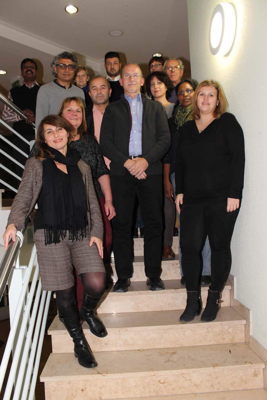 Teilnehmende am Integrationsbeirat mit städtischer Unterstützung (von links hinten): Thiru Sittampalan, Mihaela Zenth, Münir Inan, Amtsleiterin Carmen Eckert-Leutz 2. Reihe: Dr. Samet Sözeri, Efkan Igdir, Cristina Nicolas-Rubio, Salvatore Coniglio 3. Reihe: Integrationsbeauftragte Inge Baumgärtner, Mustafa Hozo, Kalanithy Selvagnanam vorne: Seza Serbest-Olgun und Anna Fried-Leiwald Nicht auf dem Bild sind: Afraa Abbas, Asiye Ersoy, Amtul Noor Sindhu und Larisa Sizev