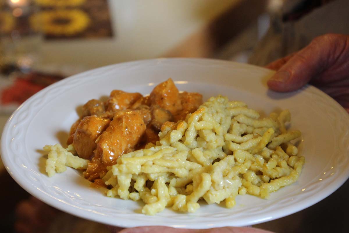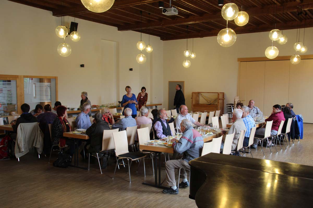 Die Gäste genossen zusammen mit den Helfern eine schmackhafte, gesunde Mahlzeit mit Putenrahmgulasch, Spätzle und Salat, die von der Kantine der Kraichgau-Werkstatt angeliefert wurde. In anregenden Gesprächen zwischen Essensgästen – vorwiegend Senioren – und Helfern wurde die Idee des Mittagstisches gelobt. Gleichzeitig bedauerte man, dass dieses Angebot offensichtlich nicht gut angenommen wurde und daher bis auf weiteres in Sinsheim nicht wiederholt wird.
