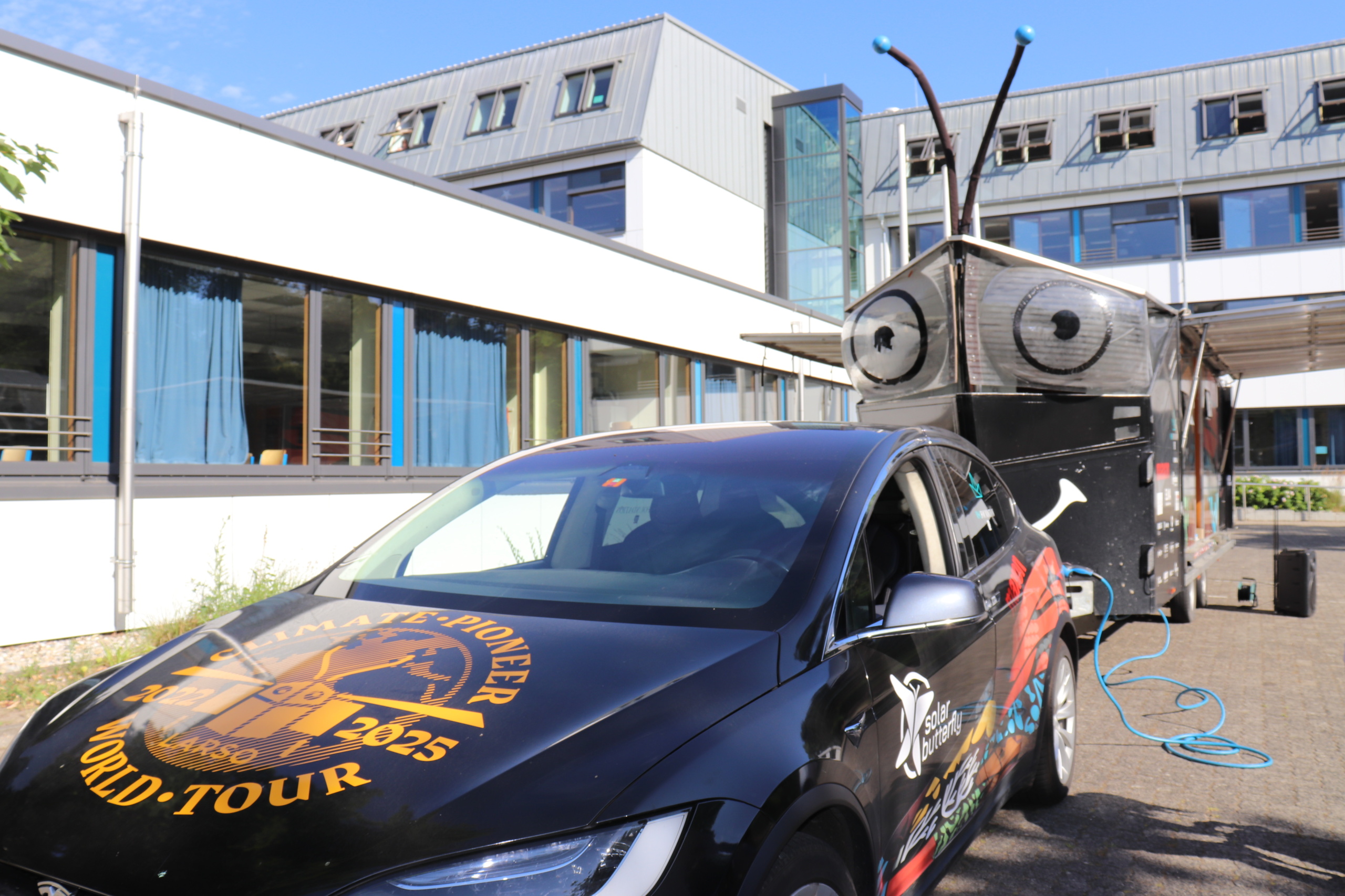 Im Anschluss an die Präsentation des Fahrzeugs nahmen die Schüler an einem Postenlauf mit 30 Fragen zu Klimawandel, Energieverbrauch und Handlungsmöglichkeiten teil. Schulleiter Albrecht zeigte sich überzeugt: „Solche Erlebnisse schaffen Bewusstsein und zeigen, dass jeder selbst handeln kann.“ Louis Palmer ergänzte in einem Vortrag, dass sein Team seit 2022 weltweit unterwegs ist, um Klimaschutzthemen an Schulen zu bringen. Seine Botschaft lautete: „Ihr gestaltet die Zukunft – mit Wissen, Mut und Engagement.“