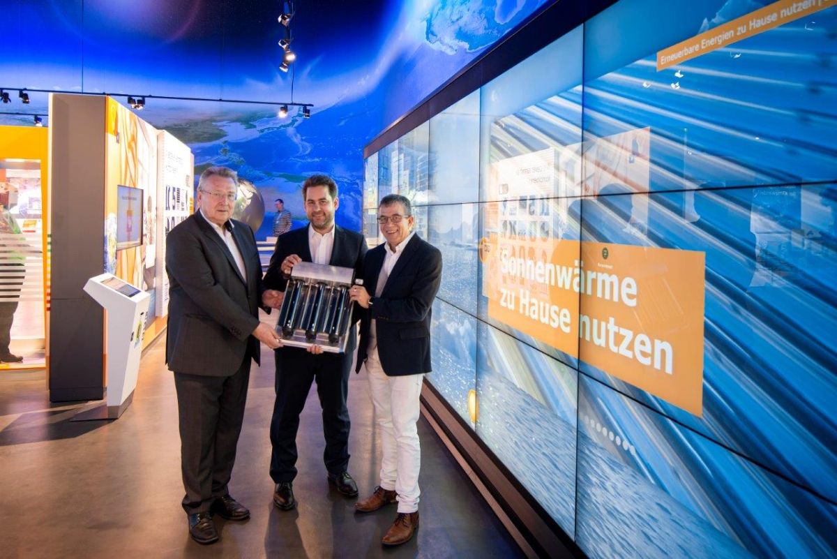 v.l.n.r. Alfred Ehrhard, Vorstandsvorsitzender der Klimastiftung für Bürger, Moritz Ritter, Vorsitzender der Geschäftsführung Ritter Energie- und Umwelttechnik GmbH & Co. KG, Peter Mülbaier , Geschäftsführer AVR UmweltService GmbH