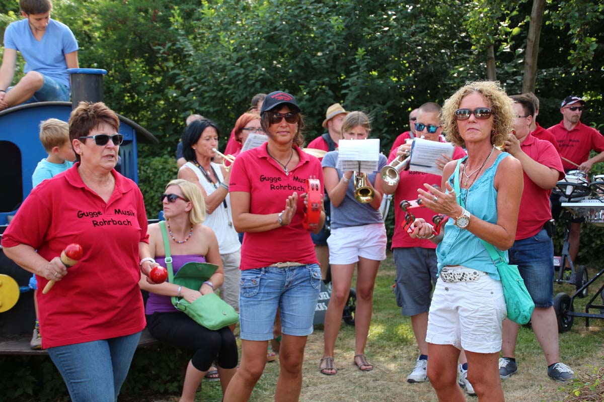 (cr) Eine glänzende Eröffnung feierte das Dorffest in Rohrbach. Eingestimmt wurde mit dem Kinderchor der Grundschule Rohrbach die sogar mit einem eigenen Song aufwarten konnten. Nach dem Auftritt des Gesangsverein gab es dann das ersehnte kühle Freibier der Heidelberger Brauerei frisch angezapft durch OV Friedhelm Zoller unter der musikalischen Begleitung der Rohrbacher Guggemusik. Bei bestem Freibadwetter dauerte es dann ein wenig bis sich die Zelte der Vereine füllten.Am Abend wurde dann im Schulbereich mit einem Open Air Konzert mit drei Bands kräftig abgerockt. Rohrbach war an diesem Wochenende auf jeden Fall ein Besuch wert.