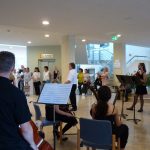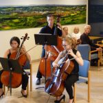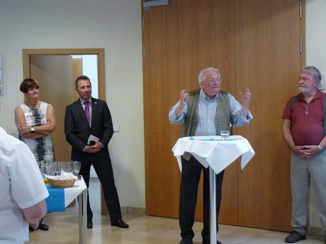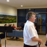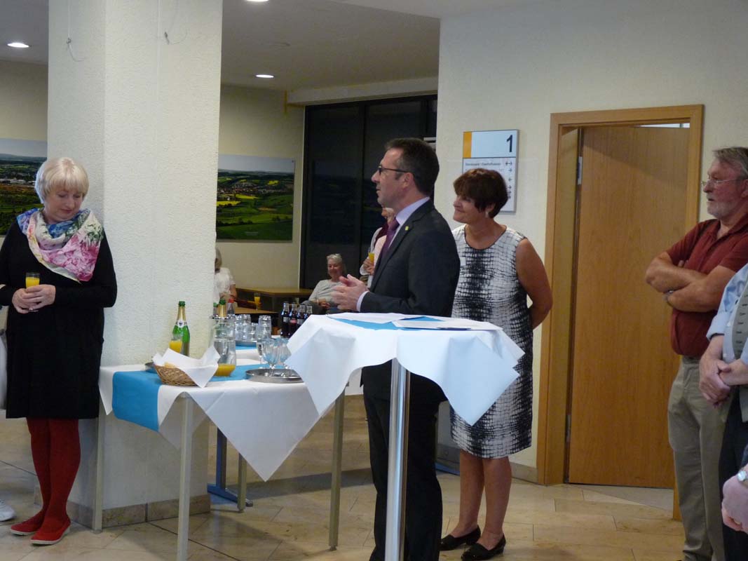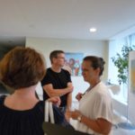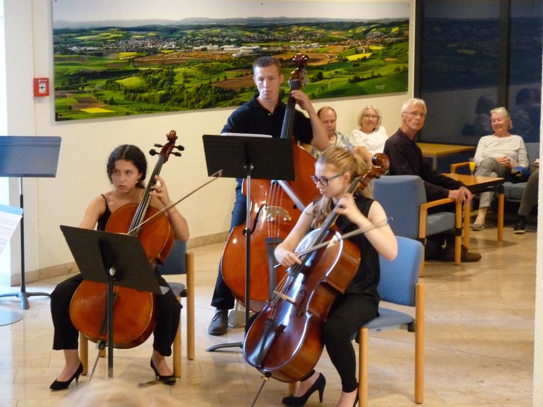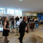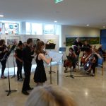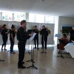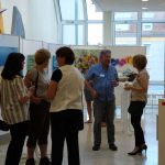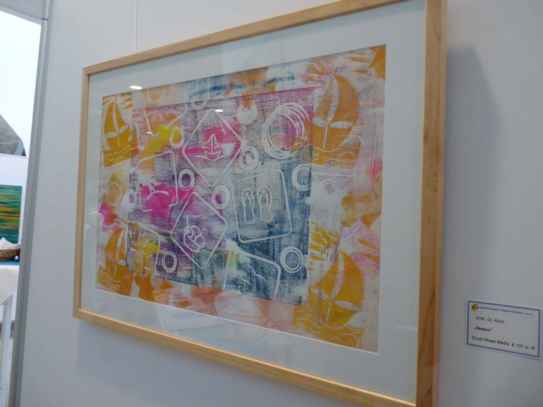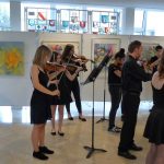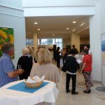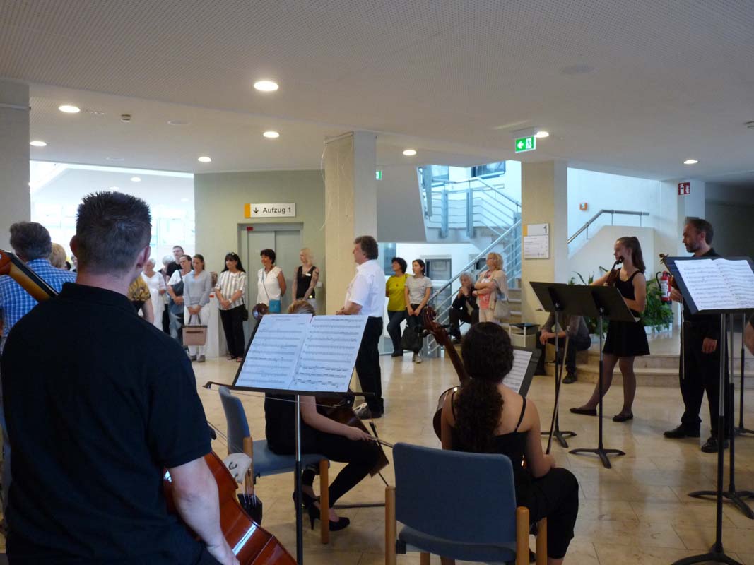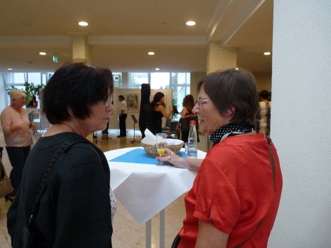 (zg) Sommerleichte Kunst, klangvolle Musik und temperamentvolle Reden begeisterten die Besucher der Vernissage. Getränke und Knabbereien unterstützten die gute Stimmung. Sinsheims Oberbürgermeister Jörg Albrecht erwähnte in seiner Begrüßung die lobenswerte Zusammenarbeit mit dem Kunstkreis Kraichgau und der Städtischen Musikschule. 12 MusikerInnen des Kammermusikensembles beeindruckten mit gefühlvollen Passagen und kräftigem Sound. Gewohnt temperamentvoll betrachtete der Laudator Franz Anton Bankuti die SommerART von verschiedensten Seiten.