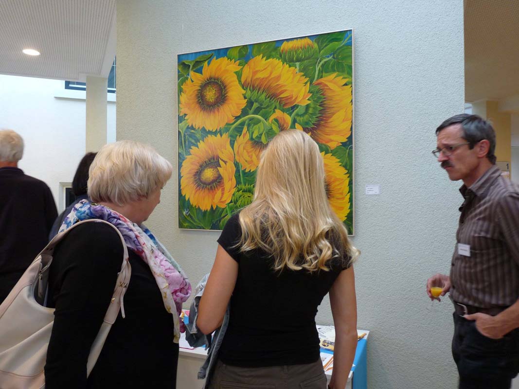 „Im Blütenrausch“, „Butterflies and flowers“, „Sommerbunt“ und „Madame Fleur“ sind nur einige der Titel dieser farbenfrohen Bilder und Skulpturen. „Sommerabendfrieden“ ist der erklärte Titel-Favorit des Laudators. Die von ihm empfohlene Zeit, die man sich beim Betrachten der Kunstwerke nehmen soll, haben Besucher des Rathauses und der Ausstellung noch bis zum 20.7.2018.