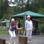 Die Lacher auf ihrer Seite hatten Heimleiterin Yvonne Sonnenfroh und Pflegedienstleiterin Karin Schröter mit ihrer Interpretation des Welthits „Zwei kleine Italiener“ aus dem Jahr 1962, im Original gesungen von Conny Froboess. Mit alten Holz- und Lederkoffern und dem typisch italienischen Outfit aus weißer Hose, blauem Streifenshirt und „Mafiahut“ konnte jeder der Besucher die Sehnsucht der Beiden nach der Heimat nachempfinden, zumal nach dem aufregenden Elfmeterschießen Der Fussball-EM am Vorabend!