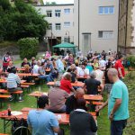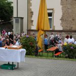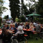 Trotz eines kleinen Schauers, der viele Gäste unter die Schirme und Pavillons flüchten ließ, war es wieder ein sehr gelungenes Fest. Auch der neue evangelische Heim- und Klinikseelsorger Pfarrer Schaber und seine katholische Mitstreiterin,Schwester Regina, die den Eröffnungsgottesdienst gemeinsam gestalteten, zeigten sich von der Atmosphäre sehr angetan.