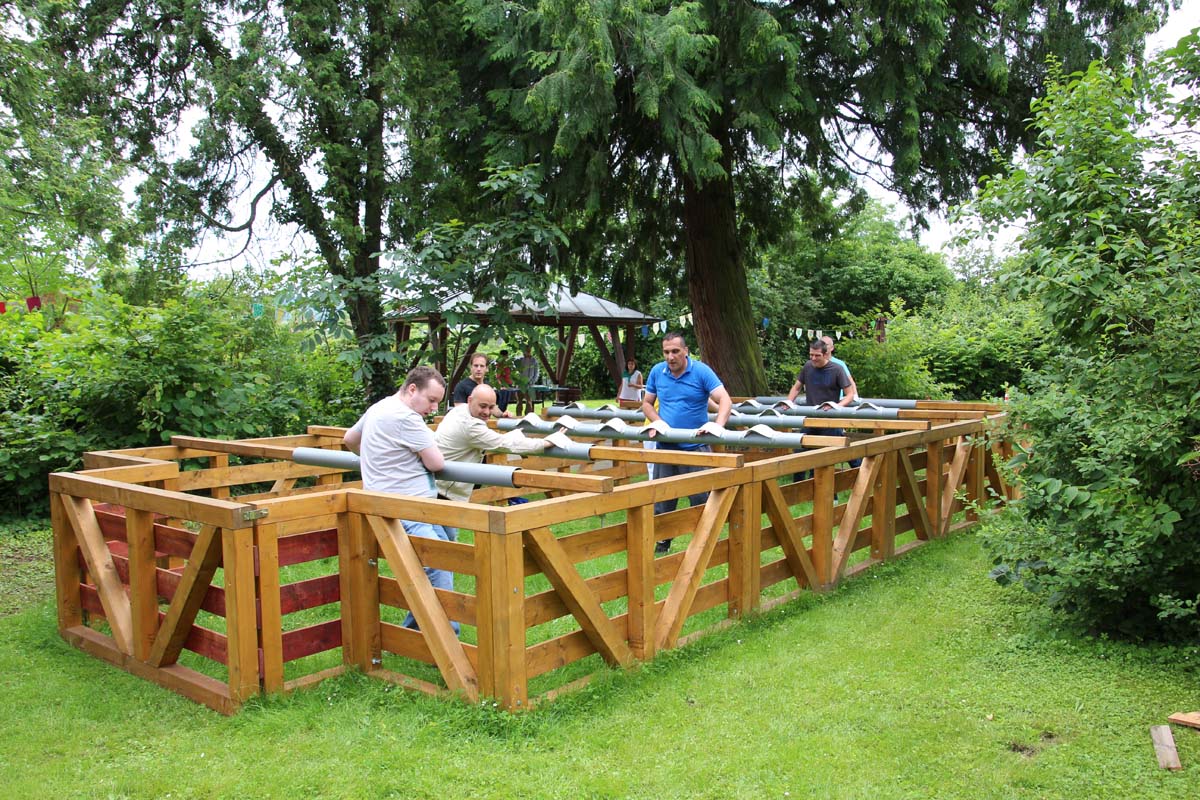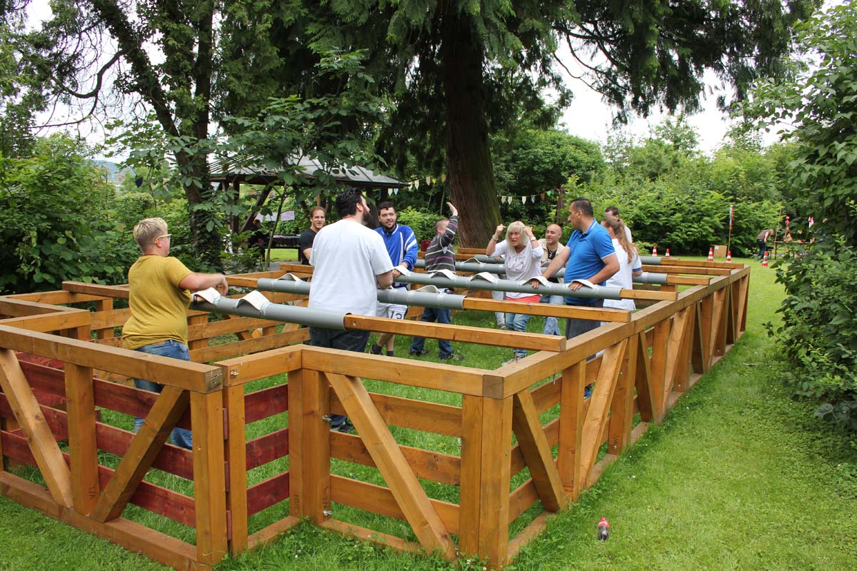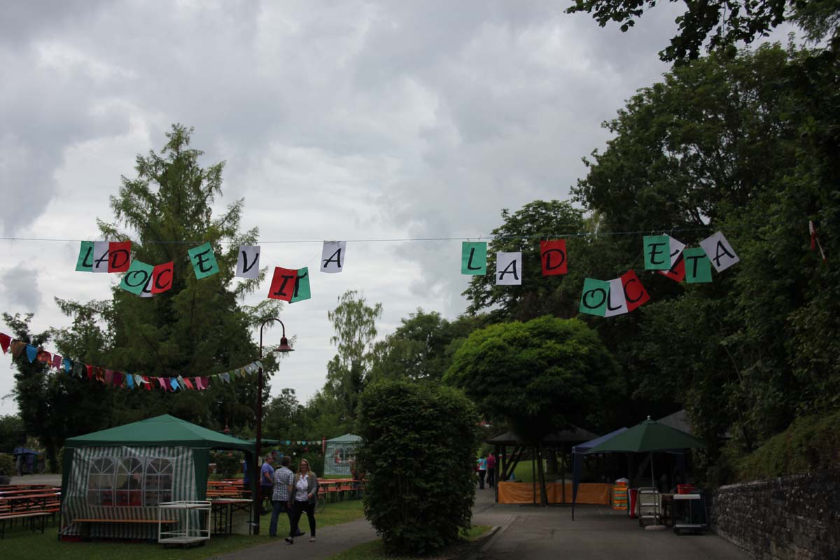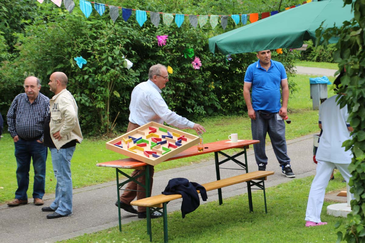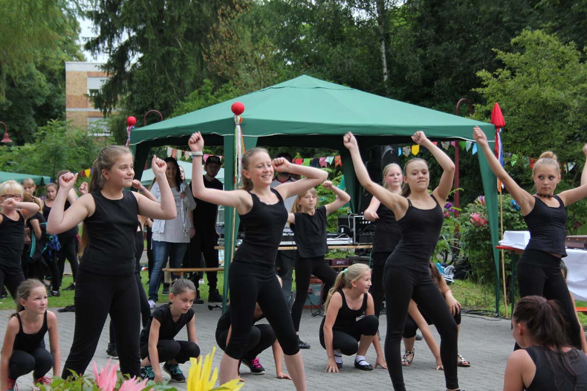 (zg) Das Leben war süß im GRN-Betreuungszentrum Sinsheim beim diesjährigen Sommerfest am vergangenen Sonntag, 3. Juli 2016. „La Dolce Vita“ lautete das Motto, und alle Beteiligten außer dem Wetter hatten sich mächtig ins Zeug gelegt, um ihm gerecht zu werden: Zum einen die Pizzabäcker, Pasta-Köchinnen und der echt italienische Eiswagen von Nico‘s aus Baiertal, deren Erzeugnisse bei den Festgästen sehr gut ankamen. Zum anderen die zahlreichen Aktiven, die mit ihren bunten Darbietungen zum ausgelassenen mediterranen Flair des Tages beitrugen: So heizten DJ Michael Estl, im Hauptberuf Arbeits- und Beschäftigungstherapeut, und die Hip-Hop-Gruppe The Elektrishes vom Tanzsportclub Sunnisheim mal mit heißen Rhythmen, mal mit romatischen italienischen Klängen die Stimmung an. Auch viele Ehrenamtliche der Kirchengemeinden Dühren und Zuzenhausen, die für eine solche Veranstaltung unentbehrlich sind, trugen zum Gelingen bei.