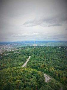 Am 23.09.2018 machte sich der Sonntagsbus mit 47 frohgelaunten Ausflüglern auf den Weg in die Landeshauptstadt Stuttgart. Dort ging es hoch hinaus auf die Aussichtsplattform des Fernsehturms. Die Reisenden konnten aus 150 Metern Höhe die auf vielen Hügeln gebauten Stadtteile von Stuttgart sehen, Flugzeuge beim Starten und Landen auf dem Flughafen beobachten sowie ins Neckartal bis weiter über Esslingen und die Ausläufer der Alb und des Schwarzwaldes blicken. Dabei wehte ihnen ein kräftiger, aber relativ warmer Herbstwind um die Ohren. Nach einem Kaffee oder Cappuccino im Panorama Café ging die Fahrt weiter in den Besen im Blockhaus in Hohenhaslach. Das Mittagessen mit typischen Besengerichten und gutem Wein im voll besetzten Blockhaus war von ausgezeichneter Qualität. Bei dem immer noch herbstlichen, aber nicht unfreundlichen Wetter machte die Reisegesellschaft nachmittags in der Klosterstadt Maulbronn Station. Die Gelegenheit zum Rundgang im Klosterhof und zur Einkehr im Kloster Café oder in der Klosterschänke wurde gerne genutzt, auch wenn am Ende kurz die Regenschirme aufgespannt werden mussten. Auf der Heimfahrt konnten die Reiseleiter Klaus Schüßler und Klaus Münch mit den begleitenden Teammitgliedern in zufriedene Gesichter sehen und auf einen schönen Tag zurückblicken. Der bei der Rückkehr nach Sinsheim einsetzende heftige Gewittersturm war nur noch auf den letzten Metern störend.