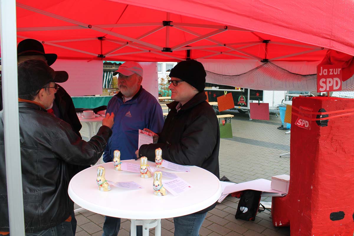 Der Hase war schon bald vergriffen. Wir konnten einigen Passanten mit unserer Aktion Mut machen, ihre Anliegen weiter mit der SPD zu diskutieren. Engagement für Veränderungen ist mehr als gefragt. Damit käme mehr Bewegung in die richtige Richtung.