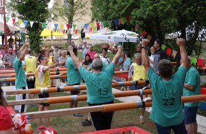 (zg) „Freude am Spiel“ heißt das Motto des diesjährigen Sommerfestes im Park des GRN-Betreuungszentrums Sinsheim (Alte Waibstadter Straße 1), das am Sonntag, 12. Juli 2015, von 11 bis 16 Uhr stattfindet. Jung und Alt sind eingeladen, gemeinsam mit Mitarbeitern und Bewohnern des Betreuungszentrums ihrer Spielfreude freien Lauf zu lassen. Die Hauptattraktion des Tages wird – neben vielen anderen Angeboten zum Spielen und diversen Leckereien von der asiatischen Reispfanne über Gegrilltes bis hin zum Spaghetti-Eis und selbstgebackenen Kuchen – in diesem Jahr die Inbetriebnahme eines selbst gebauten Menschenkicker-Spiels sein, dessen Rohmaterial im Wert von 2.400 Euro von der Firma Holzbau Hauck aus Neckarbischofsheim gesponsert wurde. „Wir hatten beim letzten Sommerfest so viel Spaß mit dem geliehenen Menschenkicker-Spiel, dass wir unbedingt selbst eines haben wollten“, berichtet Heimleiterin Sonnenfroh. „Daher sind wir überglücklich, einen Sponsor gefunden zu haben, der geholfen hat, uns diesen Traum zu erfüllen.“ Gebaut wurde das Spiel in der Betreuungszentrums-eigenen Holzwerkstatt von den dort beschäftigten Bewohnerinnen und Bewohnern. Das überdimensionale „Tischfußball“-Spiel, bestehend aus insgesamt 132 massiven Holzbalken, rund sieben Kilogramm Schrauben und Bolzen sowie gut zehn Liter Holzschutzlasur, wird am 12. Juli gegen 12.30 Uhr von Heimleiterin Yvonne Sonnenfroh gemeinsam mit einem Vertreter der Firma Hauck eingeweiht. Direkt im Anschluss daran startet ein Fußballturnier, zu dem sich bis spätestens 29. Juni auch externe Mannschaften mit jeweils sechs Spielern anmelden können (Tel.: 07261 66-2005). Das Fest findet übrigens bei jedem Wetter statt, und der Eintritt ist frei.