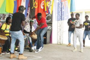 Dabei entpuppten sich die jungen Afrikaner, die kein Instrument zur Verfügung hatten als perfekte Tänzer, die nun bei öffentlichen Auftritten im Solo und im Ensemble gemeinsam mit dem Trommlern auftreten.