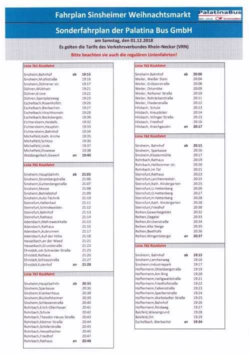 Stände, Teilnehmer und Fahrplan zum Sinsheimer Weihnachtsmarkt