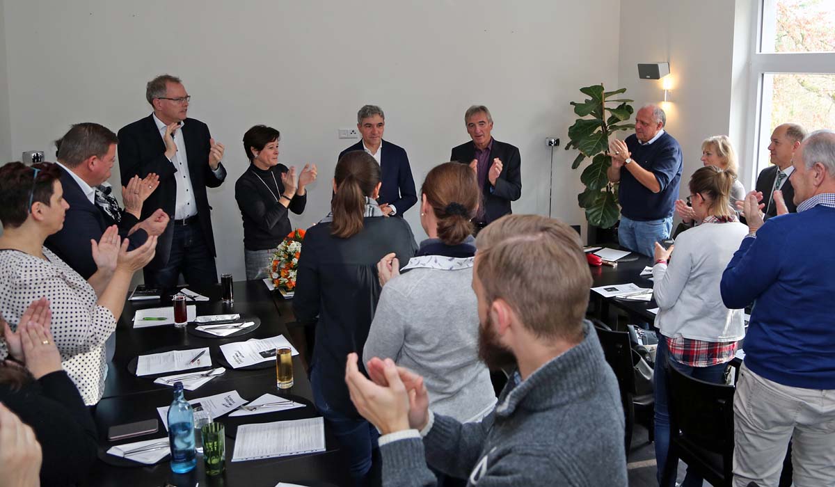„Wir haben die Daumen gedrückt, dass das alles klar geht, wir haben die Wahlen im Bundestag und im Bundesrat verfolgt und fühlten uns dann auch alle ein klein wenig als Bundesverfassungsrichter“, lachte Klein unter dem Beifall der Anwesenden.