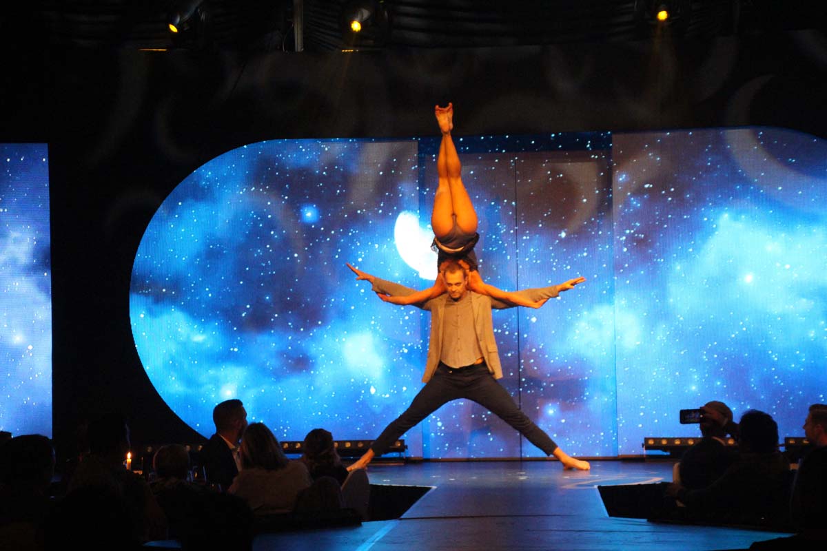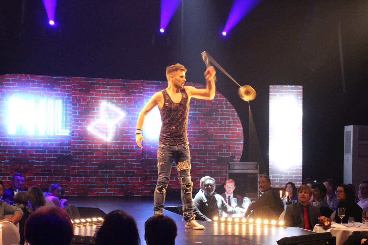 In der modernen und wundervoll winterlichen ShowArena blieben keine Wünsche offen. Hier verschmolzen Liebe zum Detail, Perfektion und Moderne zur einmaligen familiären Atmosphäre, die es nur im WinterVarieté gibt.