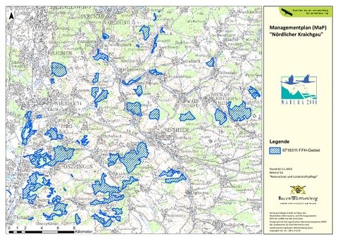 Doch wie lassen sich diese häufig von Menschenhand geprägten, besonderen Lebensräume und seltenen Tier- und Pflanzenarten auf Dauer schützen und erhalten? Dazu braucht es eine Planungs-Grundlage, die an die heutigen Strukturen und Bedürfnisse der Landnutzer und Erholung-Suchenden angepasst ist. Dies will Referat Naturschutz und Landschaftspflege des Regierungspräsidiums Karlsruhe mit Hilfe des Managementplans erreichen.