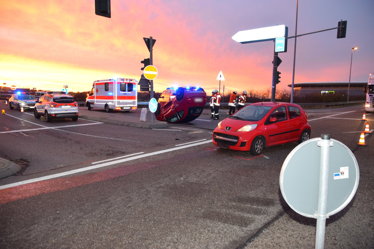 A6/Sinsheim. (red) Den ganzen Morgen waren die Rettungskräfte im Einsatz, der Verkehr kam zeitweise zum Erliegen: Am Mittwochmorgen ereignete sich im Bereich der Einfahrt Sinsheim Richtung Mannheim ein Verkehrsunfall. Der Verkehr konnte deshalb nur einspurig an der Unfallstelle vorbeifahren. Schnell bildete sich ein kilometerlanger Stau. Wenig später krachte es bei Steinsfurt: Auch dort musste eine Fahrspur während der Unfallaufnahme gesperrt werden. Gegen 07.40 Uhr erreichte die Rettungsleitstelle dann ein Notruf über einen weiteren Verkehrsunfall bei der Auffahrt Sinsheim-Süd. Im Kreuzungsbereich Dietmar-Hopp-Straße/Auffahrt A6 Richtung Mannheim waren ein Fiat und ein Peugeot zusammengestoßen. Der Fiat überschlug sich dabei und blieb auf dem Dach liegen. Beide Fahrzeugführer konnten sich aus eigener Kraft aus ihren Fahrzeugen retten. Zur weiteren Behandlung wurden sie mit Rettungswagen in umliegende Krankenhäuser eingeliefert. Wie es zu dem Unfall kam ist derzeit noch unklar – Beamten des Polizeirevier Sinsheim haben die weiteren Ermittlungen aufgenommen. Während der Unfallaufnahme musste die Einfahrt rund 30 Minuten gesperrt werden. Im Einsatz waren neben mehreren Polizeifahrzeugen, einem Notarzt und zwei Rettungswagen auch die Freiwillige Feuerwehr Sinsheim. Beide Fahrzeuge mussten abgeschleppt werden, es entstand Sachschaden in noch unbekannter Höhe.