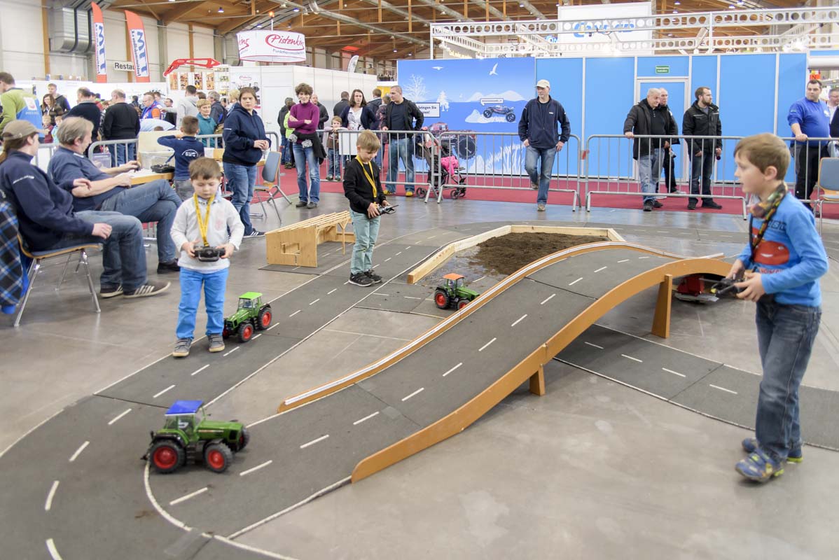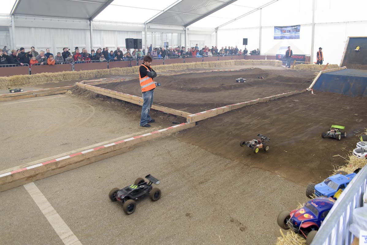 Mit Kind und Kegel zurück in der Messehalle gab es kein Vorbeikommen an der RC-Car-Arena. Hier tobten sich die Modellrennfahrer an Sprungrampen, Steilwand und waghalsigen Hindernissen aus. Bei den heiß umkämpften Rennen und der Freestyle Jump Show lag der Geruch von Spannung, Wagemut und Abenteuer in der Luft.
