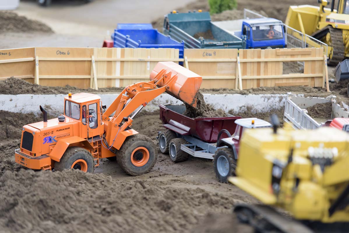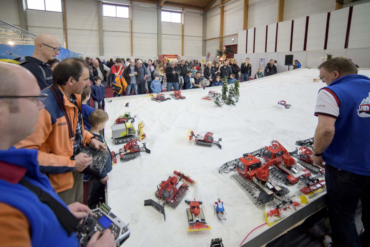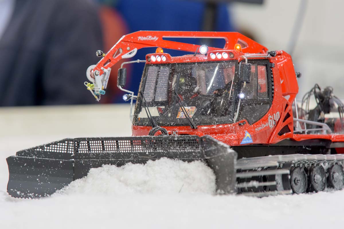 Zwei Truck-Parcours, ein Baumaschinen- und der Militärparcours sowie die Pistenraupen-Show erfüllten alle Wünsche der Modellbau-Fans. Da wurden Trucks mit hochgradigster Präzision durch unwegsames Gelände manövriert, augenscheinlich schwerfällige Pistenraupen wagten ein fast graziles Tänzchen und mächtige Baufahrzeuge bewegten im Hochbetrieb Erdmassen und Gestein. Das bewies abermals: Die Miniaturen können mit den Großen jederzeit mithalten.