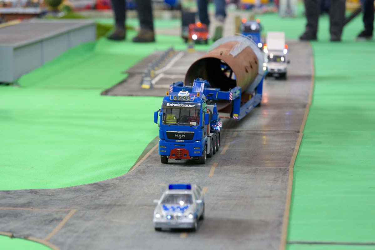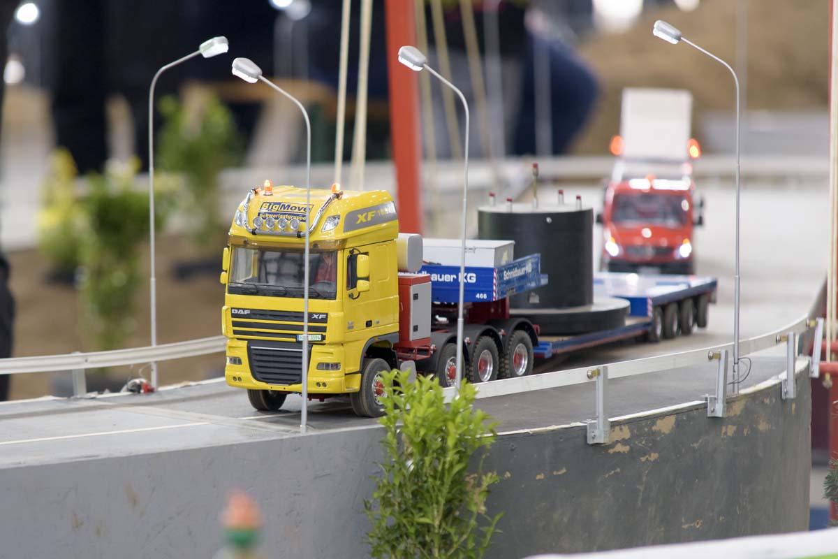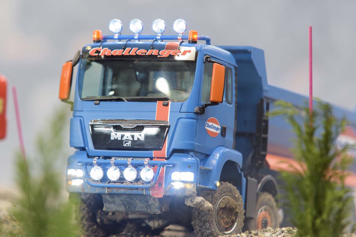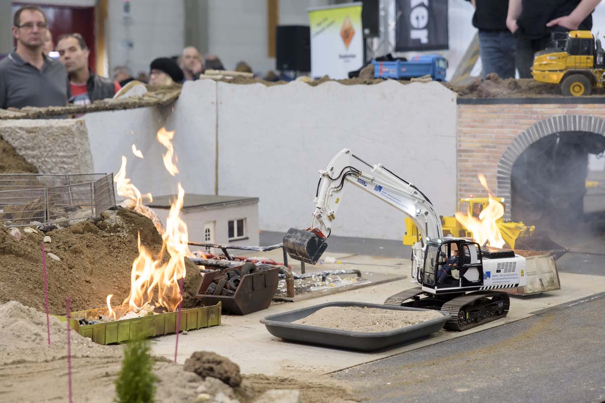 Zwei Truck-Parcours, ein Baumaschinen- und der Militärparcours sowie die Pistenraupen-Show erfüllten alle Wünsche der Modellbau-Fans. Da wurden Trucks mit hochgradigster Präzision durch unwegsames Gelände manövriert, augenscheinlich schwerfällige Pistenraupen wagten ein fast graziles Tänzchen und mächtige Baufahrzeuge bewegten im Hochbetrieb Erdmassen und Gestein. Das bewies abermals: Die Miniaturen können mit den Großen jederzeit mithalten.