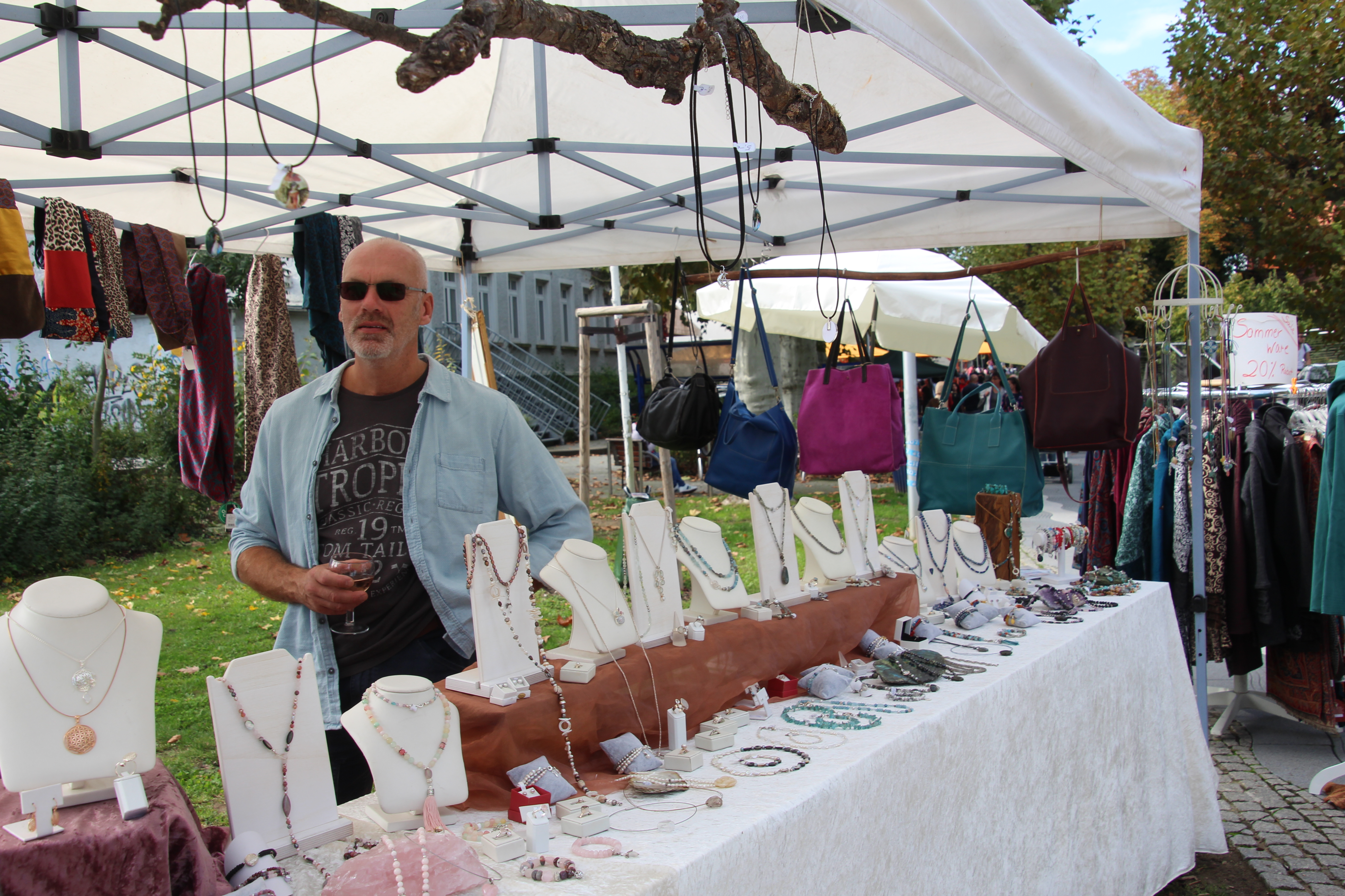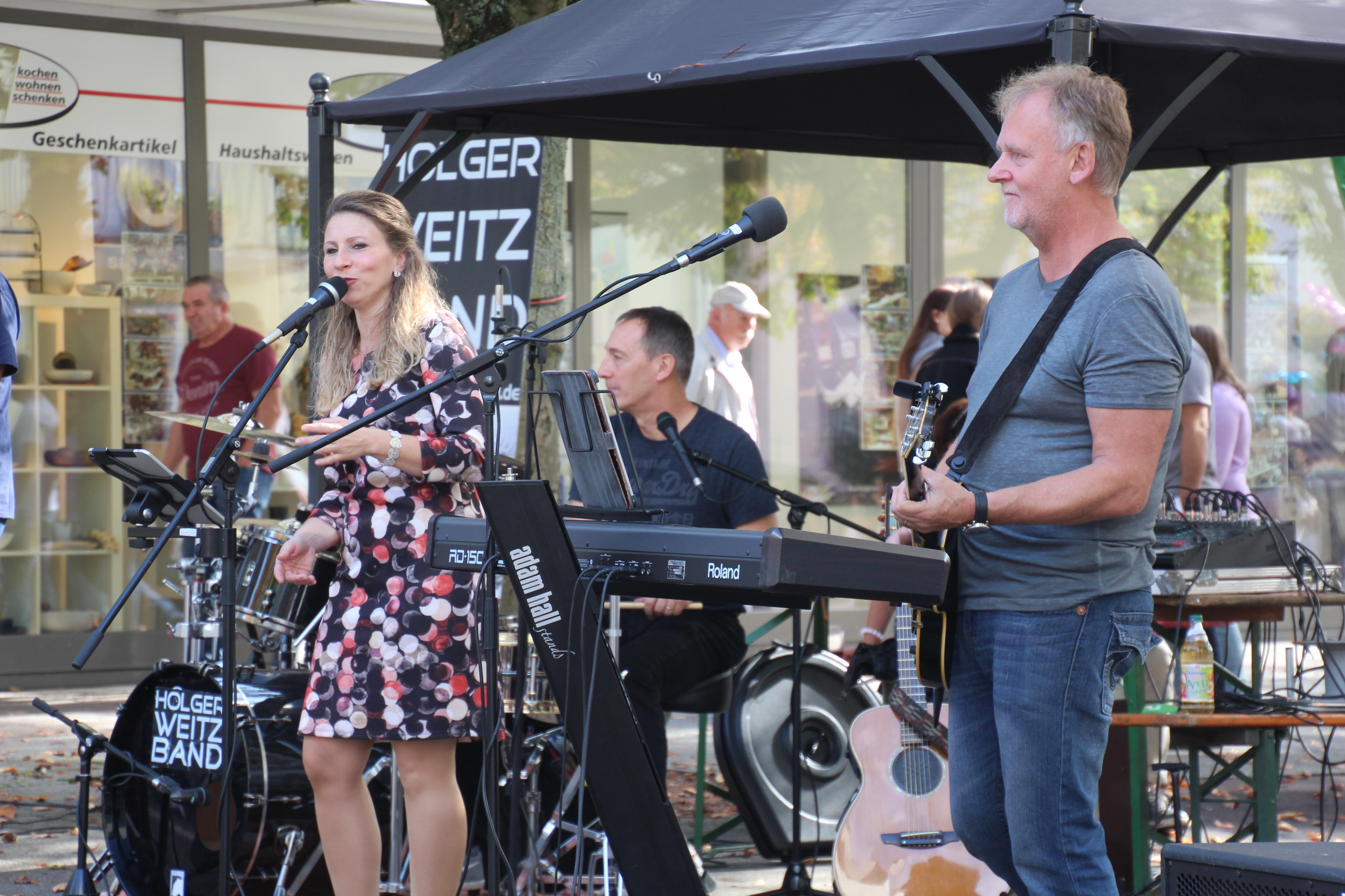 (cr) Die Sinsheimer konnten dieses Jahr bei strahlendem Sonnenschein durch die Innenstadt beim Sinsheimer Herbst flanieren. Da strahlten die Gesichter aller Beteiligten mit der Sonne um die Wette. Ob bei den Gewerbetreibenden der Innenstadt, die Autohändler auf dem Burgplatz, die Künstler in der Allee oder auch die Händler des Krämermarktes, alle waren sie zufrieden. Mit der Holger Weitz Band war auch musikalisch wieder für gute Stimmung gesorgt.