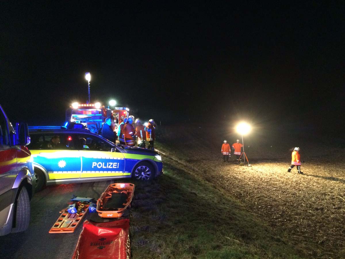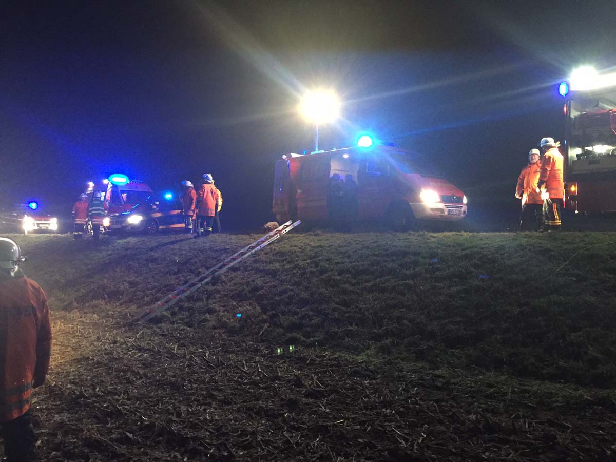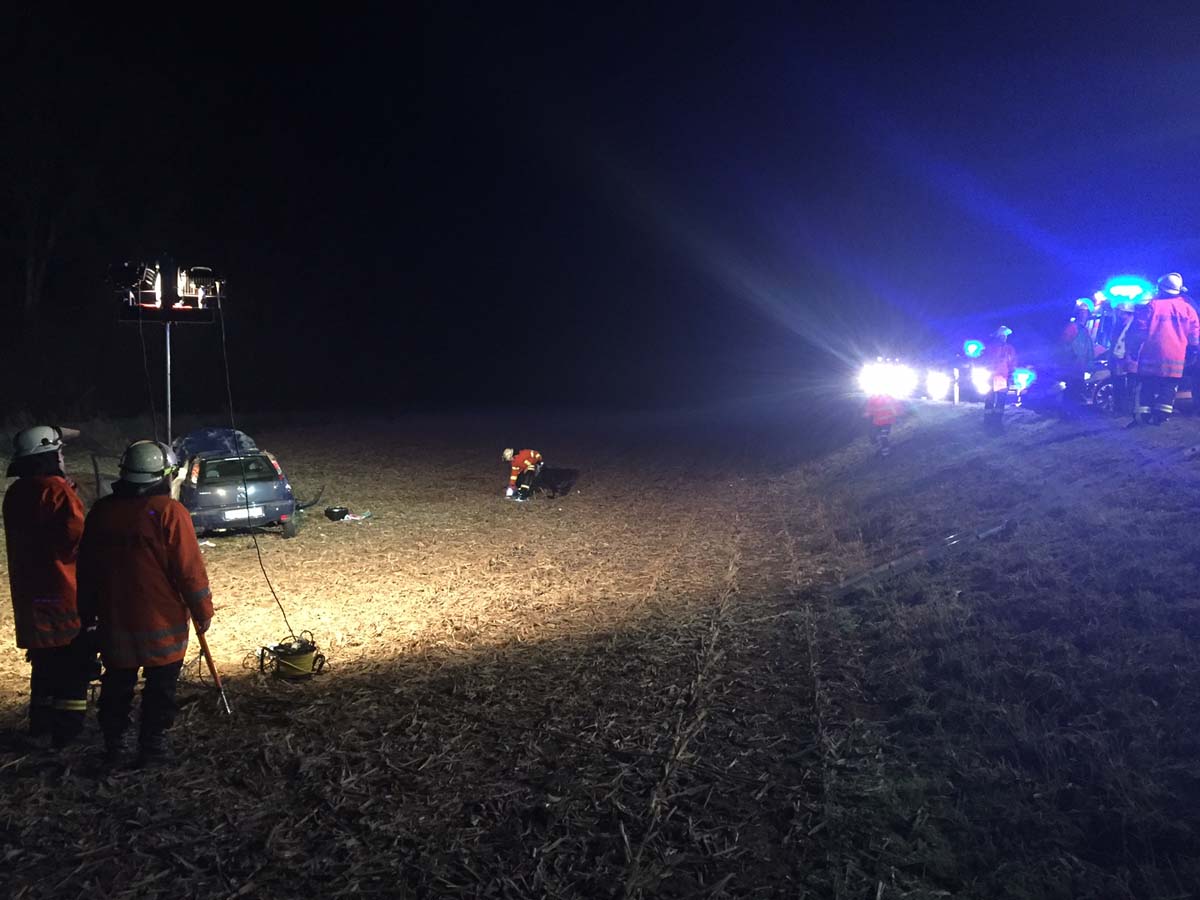 IMG_0515Sinsheim (pol) – Am Donnerstagabend kurz vor 18.00 Uhr verlor eine 23-jährige Pkw-Fahrerin auf der K 4283 zwischen Sinsheim-Steinsfurt und Sinsheim-Adersbach, infolge überfrierender Nässe und bei Nebel in einer Linkskurve die Kontrolle über ihr Fahrzeug und geriet nach links in die angrenzende Böschung. Beim Versuch Gegenzulenken schleuderte sie nach rechts, kam von der Fahrbahn ab, kippte zur Seite, und rutschte eine etwa 3 Meter tiefe Böschung hinunter. Hierbei überschlug sie sich mehrfach und kam auf einer angrenzenden Wiese zum Stehen. Der Pkw wurde total beschädigt und die Fahrerin verletzt. Sie erlitt eine Kopfplatzwunde sowie Prellungen und wurde nach notärztlicher Versorgung in ein Krankenhaus eingeliefert. Die Freiwilligen Feuerwehren Sinsheim und SNH-Steinsfurt waren mit mehreren Einsatzfahrzeugen vor Ort und bargen die verletzte Fahrerin aus dem Auto.