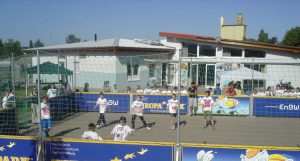 Ein Tag vor Turnierbeginn wird der Soccer-Court für ein Schulturnier aufgebaut sein. Die 7. Klassen der Theodor-Heuss-Schule kicken bereits freitags um den begehrten 1. Platz im Straßenfußball.