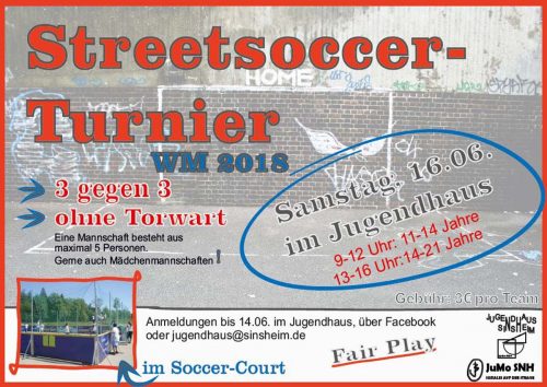 (zg) Sommer 2018 – Endlich wieder ein Fußball-Sommer! Auf dem Soccergelände in der Lilienthalstraße  veranstalten „JuMo – Soziales auf der Straße“ und das städtische Jugendhaus am Samstag, den 16.06.2018 ein Streetsoccer-Turnier für Jugendliche in zwei Altersklassen (11-14 Jahre und 14-21 Jahre).