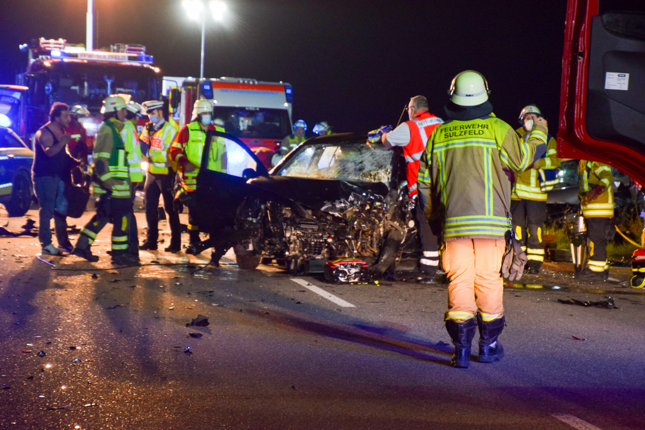 Zu einem folgenschweren Verkehrsunfall der sich am Montagabend auf der Bundesstraße 293 bei Sulzfeld ereignet hat, sucht die Verkehrspolizei Karlsruhe Zeugen und den flüchtigen, unfallbeteiligten Lastwagen. Eine 19-jährige Fahrerin war gegen 22.45 Uhr in ihrem Hyundai auf der Strecke von Zaisenhausen in Richtung Sulzfeld unterwegs, als sie Höhe Neuhof einen Lastwagen überholte. Hierbei schätzte sie die Verkehrssituation offenbar falsch ein und kollidierte mit einem entgegenkommenden Ford eines 39-Jährigen. Der Wagen der Frau prallte in der Folge in den Unterfahrschutz des noch daneben fahrenden Lasters. Der Ford kam im angrenzenden Grünstreifen zum Stehen. Die Fahrerin verletzte sich schwer und musste von hinzugeeilten Rettungskräften mit Notarzt in ein Krankenhaus gebracht werden. Der 39-jährige Ford-Lenker wurde mit lebensgefährlichen Verletzungen ebenfalls in eine Klinik transportiert. Ohne sich um den Unfall und die Verletzten zu kümmern entfernte sich der Lkw-Fahrer von der Unfallstelle – trotz des Aufpralls in den seitlichen Unterfahrschutz, der blaue Lackantragungen am verunfallten Hyundai hinterließ. Die Strecke zwischen Sulzfeld und Zaisenhausen war für die Dauer der Unfallaufnahme für mehrere Stunden voll gesperrt. Der Sachschaden beläuft sich auf rund 15.000 Euro.