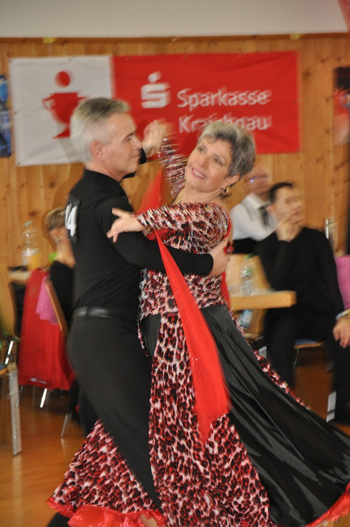 Pünktlich um 9:30 startete das 1. Turnier mit der Senioren IIID Klasse (50/55 Jahre). Das Sinsheimer Paar Peter und Anette Eckerle starteten in der nächst höheren Leistungsklasse Senioren IIIC Standard und gewann dies souverän mit allen gewonnenen Tänzen. Dem Reglement nach durften sie dann in der nächst höheren Leistungsklasse, der Senioren IIIB Klasse starten und erreichten hier den 2. Platz hinter Matthias und Yvonne Richter aus Friedberg.