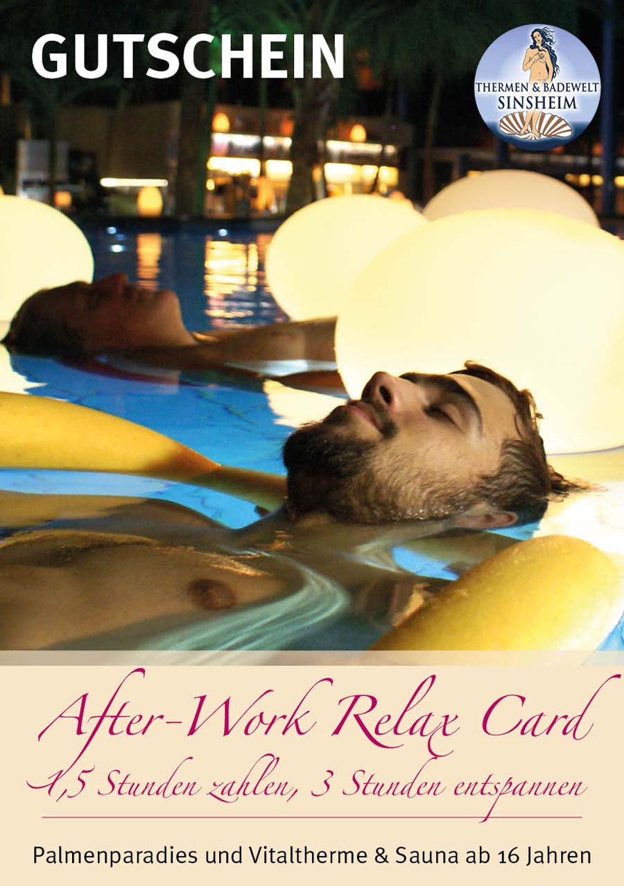Das Angebot: kostenfreie After-Work Relax Card für MitarbeiterTHERMEN & BADEWELT SINSHEIM unterstützt das Betriebliche Gesundheitsmanagement von Firmen in der RegionAb sofort...