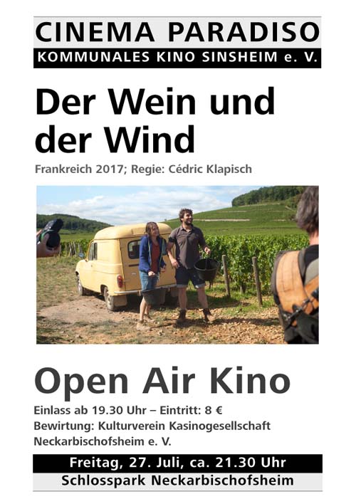 Der Wein und der Wind Cinema Paradiso, das kommunale Kino Sinsheim e.V., zeigt den französischen Film von 2017 unter der Regie von Cédric Klapisch. Freitag 27. Juli 2018 im...