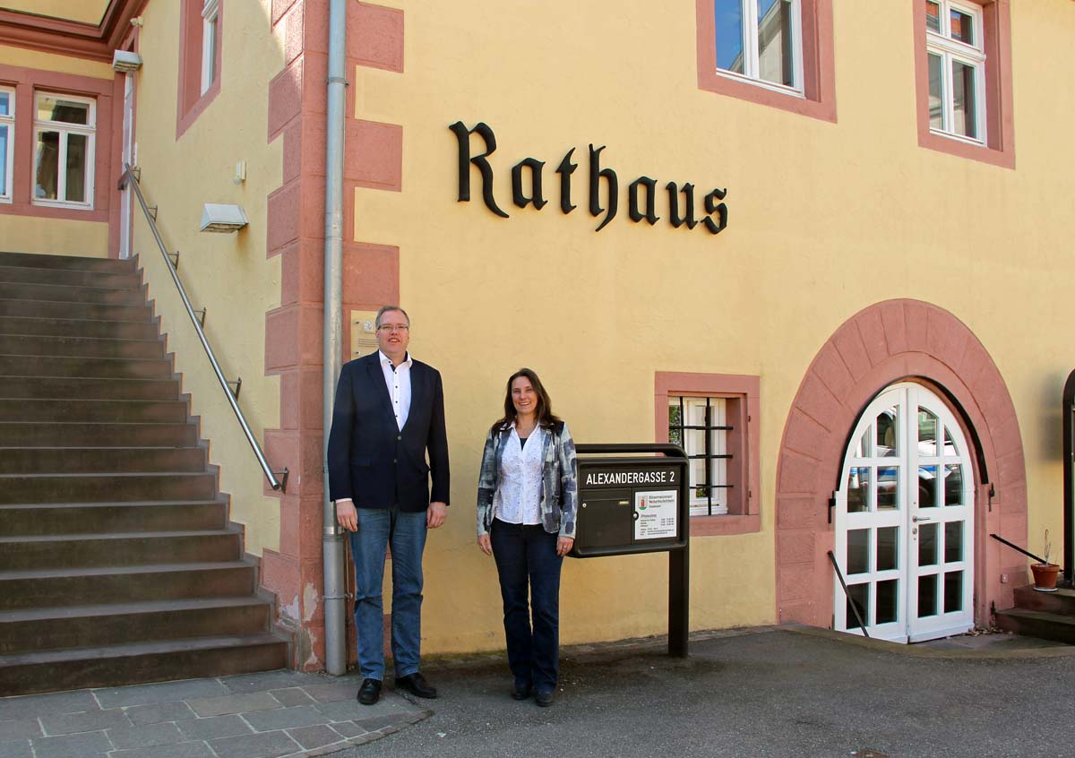 Dr. Albrecht Schütte MdL im Gespräch mit Neckarbischofsheims Bürgermeisterin Tanja Grether (zg) Bürgermeisterin Tanja Grether will ihre Stadt auch weiterhin auf den...