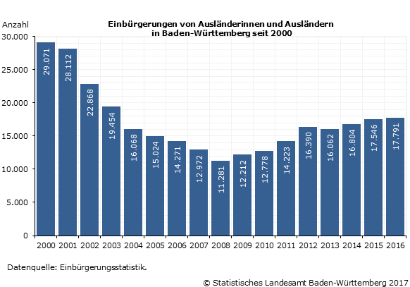 Einbürgerungen von britischen Staatsbürgern haben sich mehr als verfünffacht In Baden‑Württemberg wurden im Verlauf des vergangenen Jahres 17 791 Ausländerinnen und Ausländer...