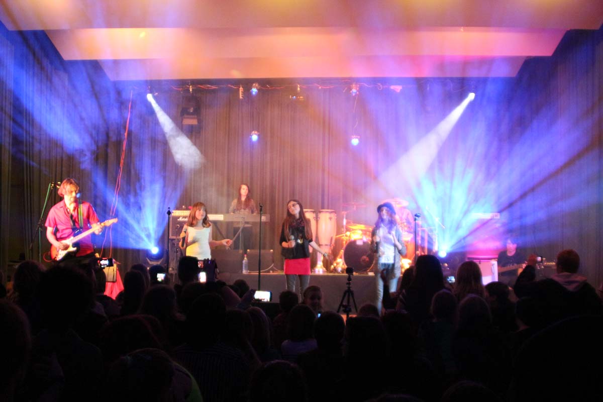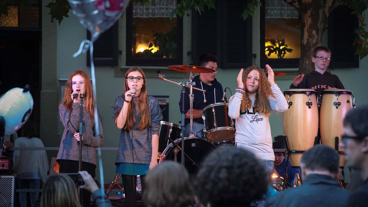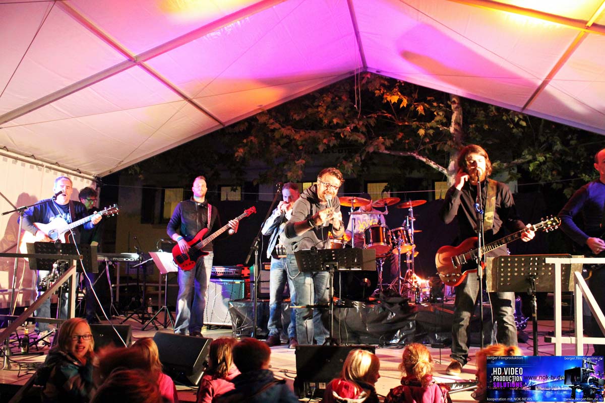 Sinsheimer Lehrerband rockt mit Epfenbacher Schülergruppen(zg) Singende, tanzende und klatschende Menschen auf dem restlos gefüllten Marktplatz, Rock-Sound aus den Lautsprechern...