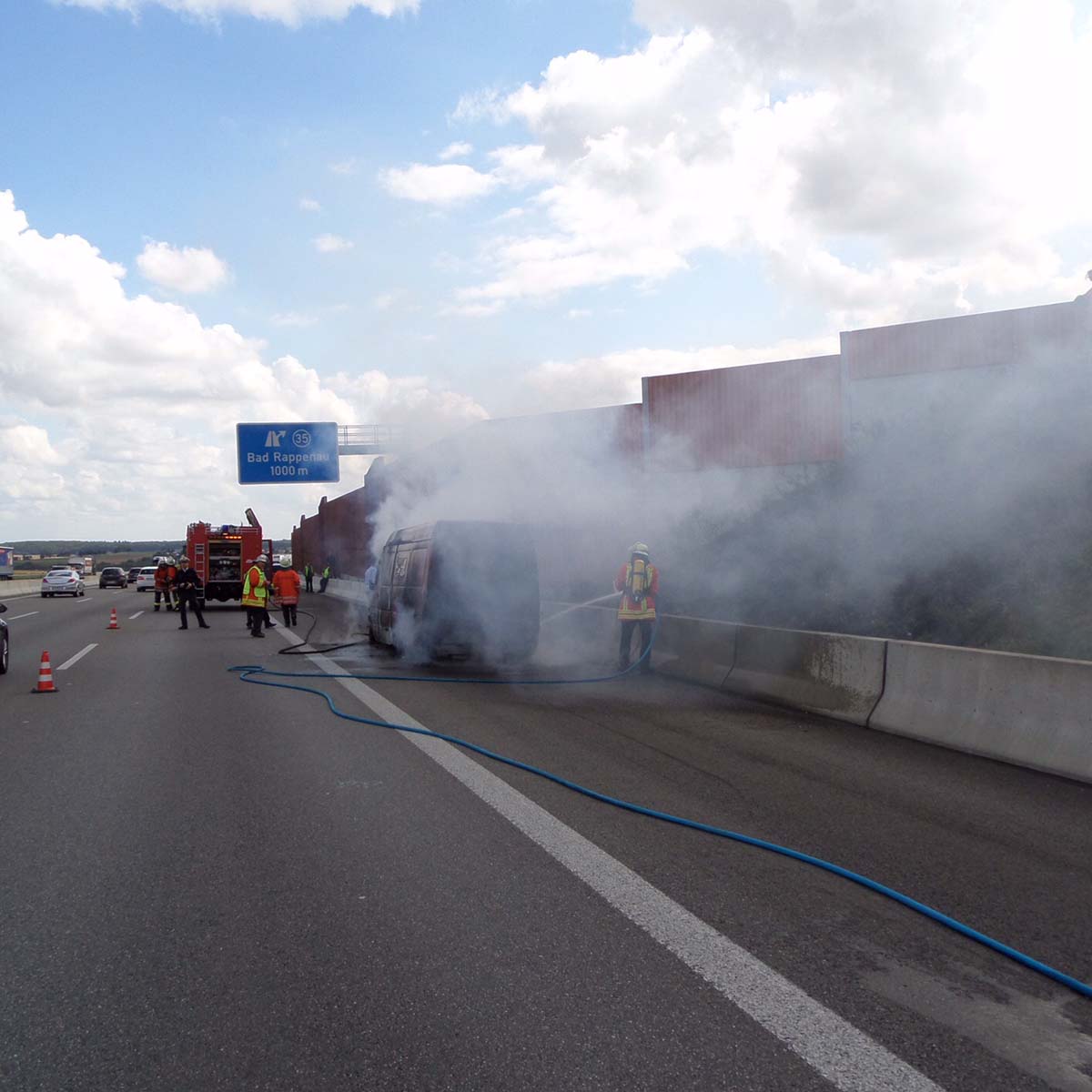 (cr) Zur Mittagszeit wurde die FFW Sinsheim zu einem Brandsatz auf die BAB6 Richtung Heilbronn gerufen. Ein Kleintransporter stand auf dem Standstreifen in Flammen. Der Sprinter...