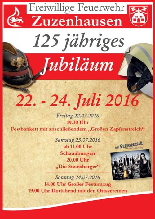 Vom 22. bis 24. Juli feiert die Freiwillige Feuerwehr Zuzenhausen ihr 125-jähriges Jubiläum mit einem großen Festwochenende.Das Programm beginnt am Freitag, den 22. Juli um 19:30...