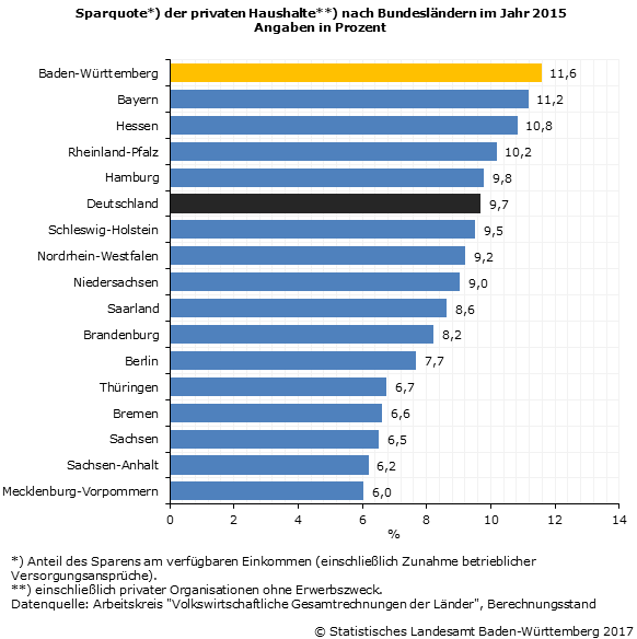 Baden-Württemberg ist auch 2016 das sparfreudigste Bundesland Die privaten Haushalte1 in Baden-Württemberg gaben im Jahr 2016 für ihren Konsum fast 238 Milliarden (Mrd.) Euro...