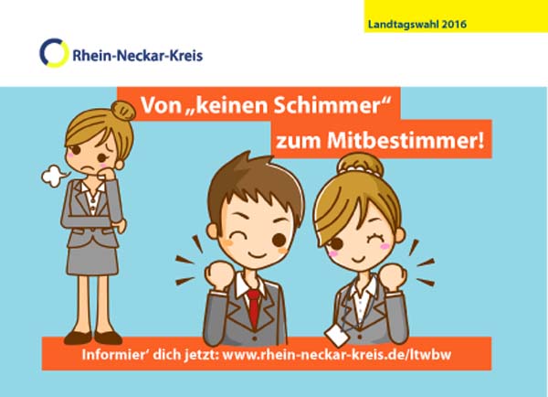 Anlässlich der Landtagswahl in Baden-Württemberg am Sonntag, 13. März 2016Rund 395.000 Wählerinnen und Wähler im Rhein-Neckar-Kreis sind in den Wahlkreisen Wiesloch (37),...