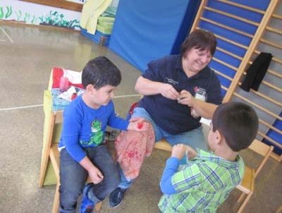 (zg) Nach fünf Wochen Vorbereitung der Vorschulkinder und ihren Erzieherinnen war es endlich soweit: Frau Schütz vom Deutschen Roten Kreuz in Heidelberg und ihr „Gehilfe“ der...