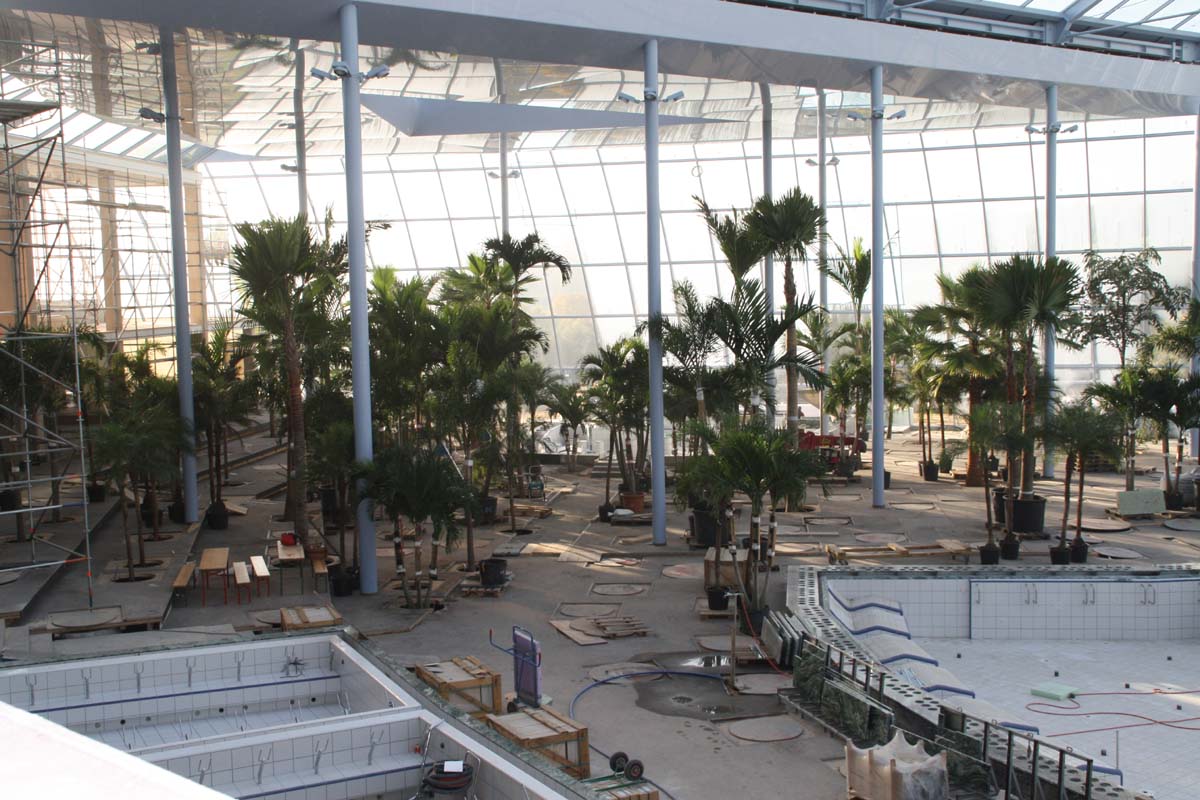 (cr) Es gibt noch viel zu tun, aber sie liegen im Plan. Das Ziel, die Eröffnung am 18. Dezember 2012, haben die Betreiber fest im Auge. Stück für Stück werden die Palmen...