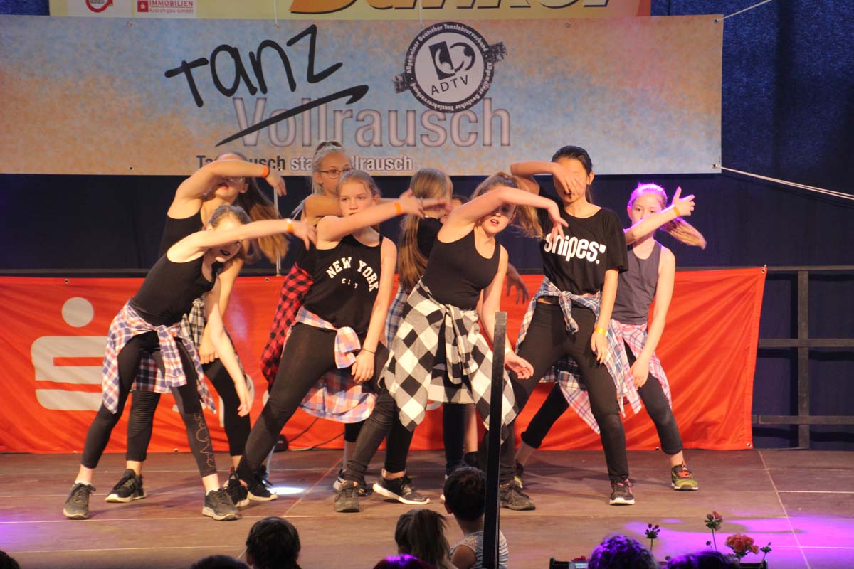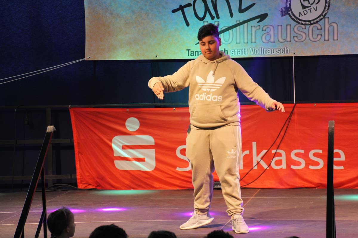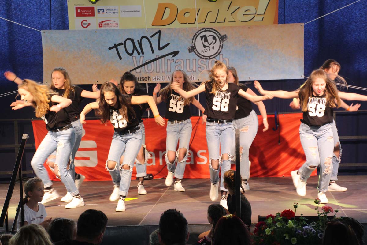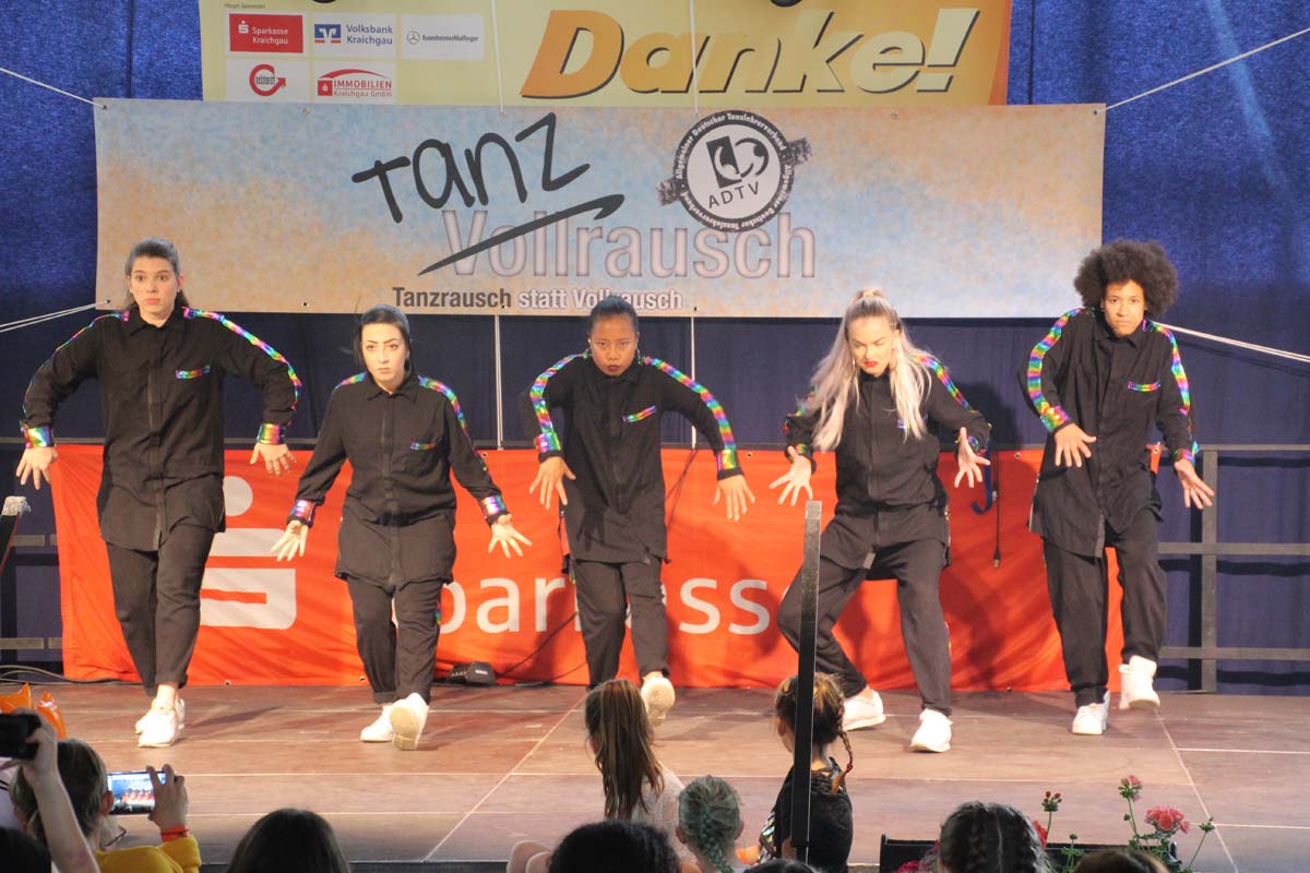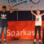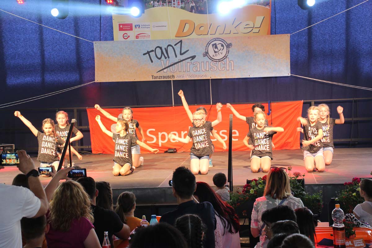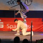 cr) Was für ein Tanzspektakel. Vor acht Jahren hatte man diese Tanzrausch statt Vollrausch Party mit 30 Teilnehmern angefangen. Inzwischen besteht das Teilnehmerfeld aus über 150 Startern. Und die machen nicht nur eine riesen Show auf der Bühne sondern sorgen auch für richtig Stimmung im Saal. Auch die Jury hielt es nicht auf ihren Stühlen aus. Das besondere an den Teilnehmern ist, sie sind wie eine grosse Familie. Auch wenn in diesem Jahr die Suchtprävention mit dem Rauschparcour etwas in den Hintergrund gerückt ist, die Message kam rüber und wurde verstanden. Man kann dem Organisationsteam des Tanzcentrum Sinsheim nur gratulieren für diese grossartige Veranstaltung zum Fohlenmarkt. Anna Stegmaier machte als Moderatorin einen grossen Job. Zum Schluss gab es noch einen grossen Spendenscheck von 1500 Euro an den Kinderhilfefond, der sich aus den Startgeldern der letzten 2 Jahre und einer Aufrundung durch die Sparkasse ergab.