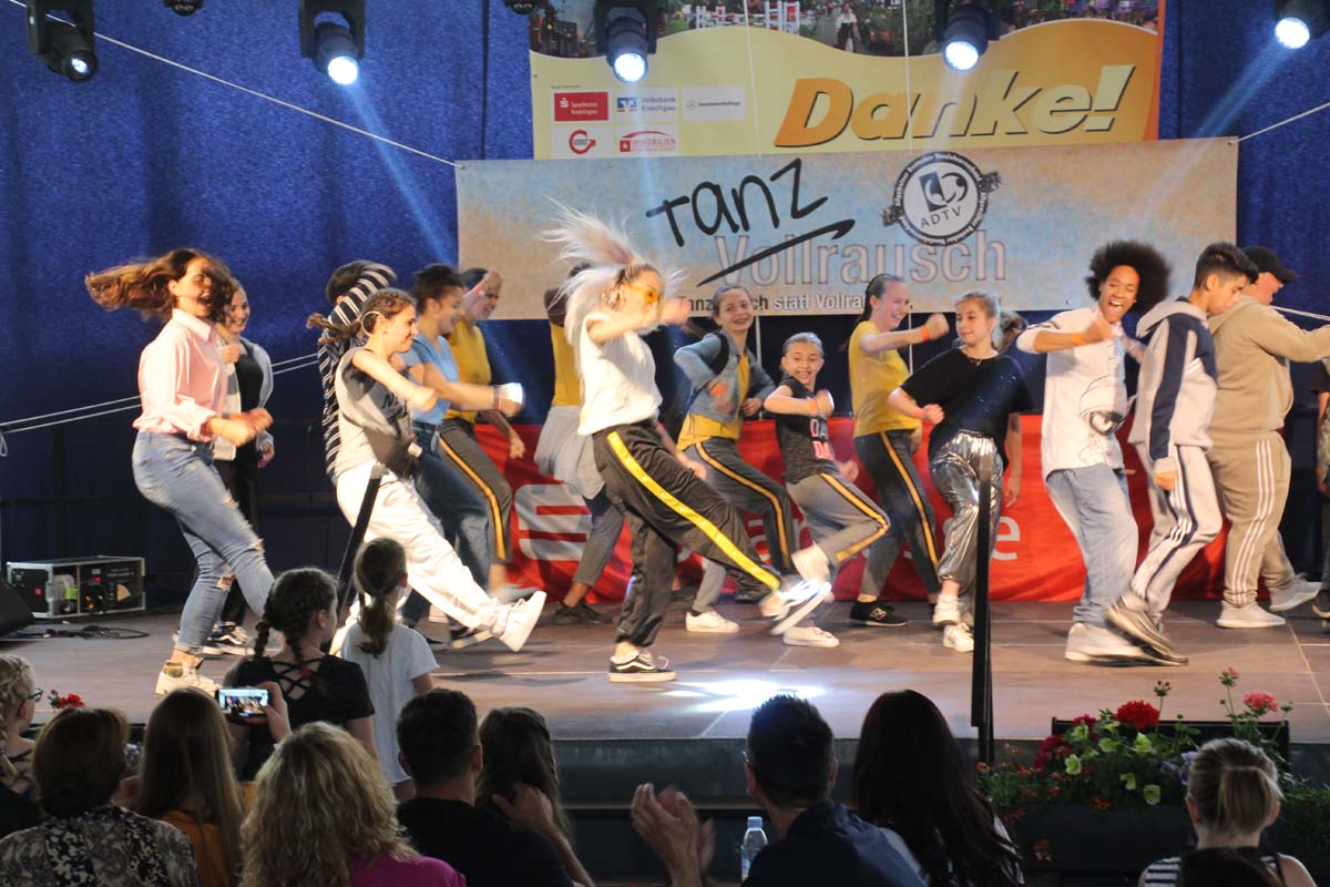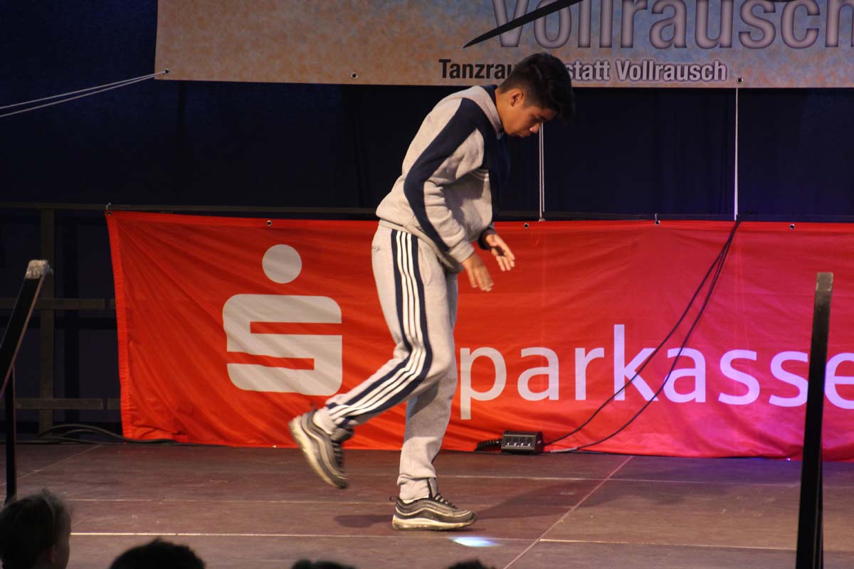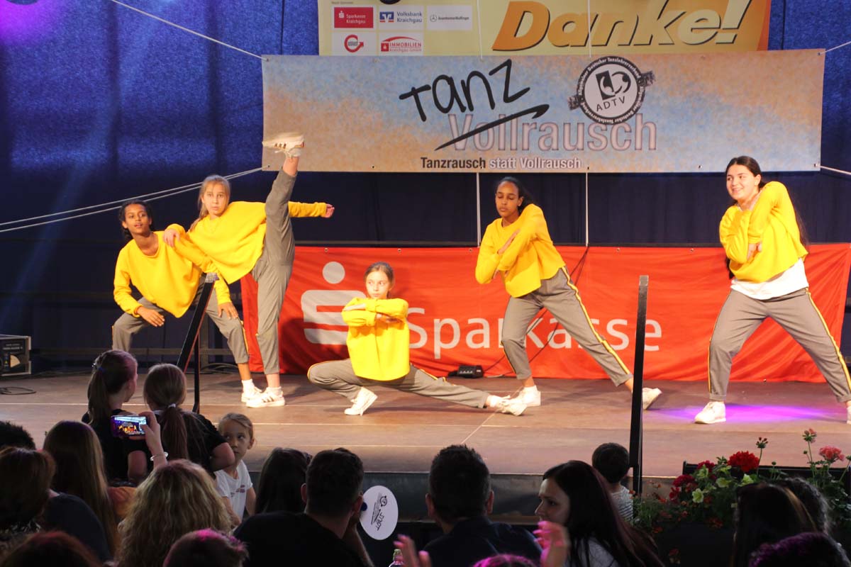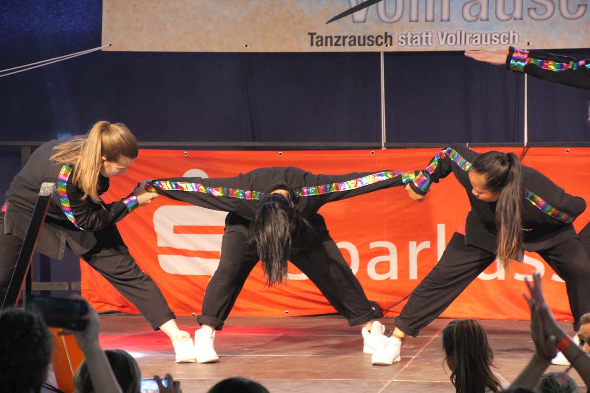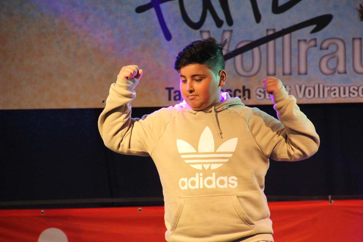 cr) Was für ein Tanzspektakel. Vor acht Jahren hatte man diese Tanzrausch statt Vollrausch Party mit 30 Teilnehmern angefangen. Inzwischen besteht das Teilnehmerfeld aus über 150 Startern. Und die machen nicht nur eine riesen Show auf der Bühne sondern sorgen auch für richtig Stimmung im Saal. Auch die Jury hielt es nicht auf ihren Stühlen aus. Das besondere an den Teilnehmern ist, sie sind wie eine grosse Familie. Auch wenn in diesem Jahr die Suchtprävention mit dem Rauschparcour etwas in den Hintergrund gerückt ist, die Message kam rüber und wurde verstanden. Man kann dem Organisationsteam des Tanzcentrum Sinsheim nur gratulieren für diese grossartige Veranstaltung zum Fohlenmarkt. Anna Stegmaier machte als Moderatorin einen grossen Job. Zum Schluss gab es noch einen grossen Spendenscheck von 1500 Euro an den Kinderhilfefond, der sich aus den Startgeldern der letzten 2 Jahre und einer Aufrundung durch die Sparkasse ergab.