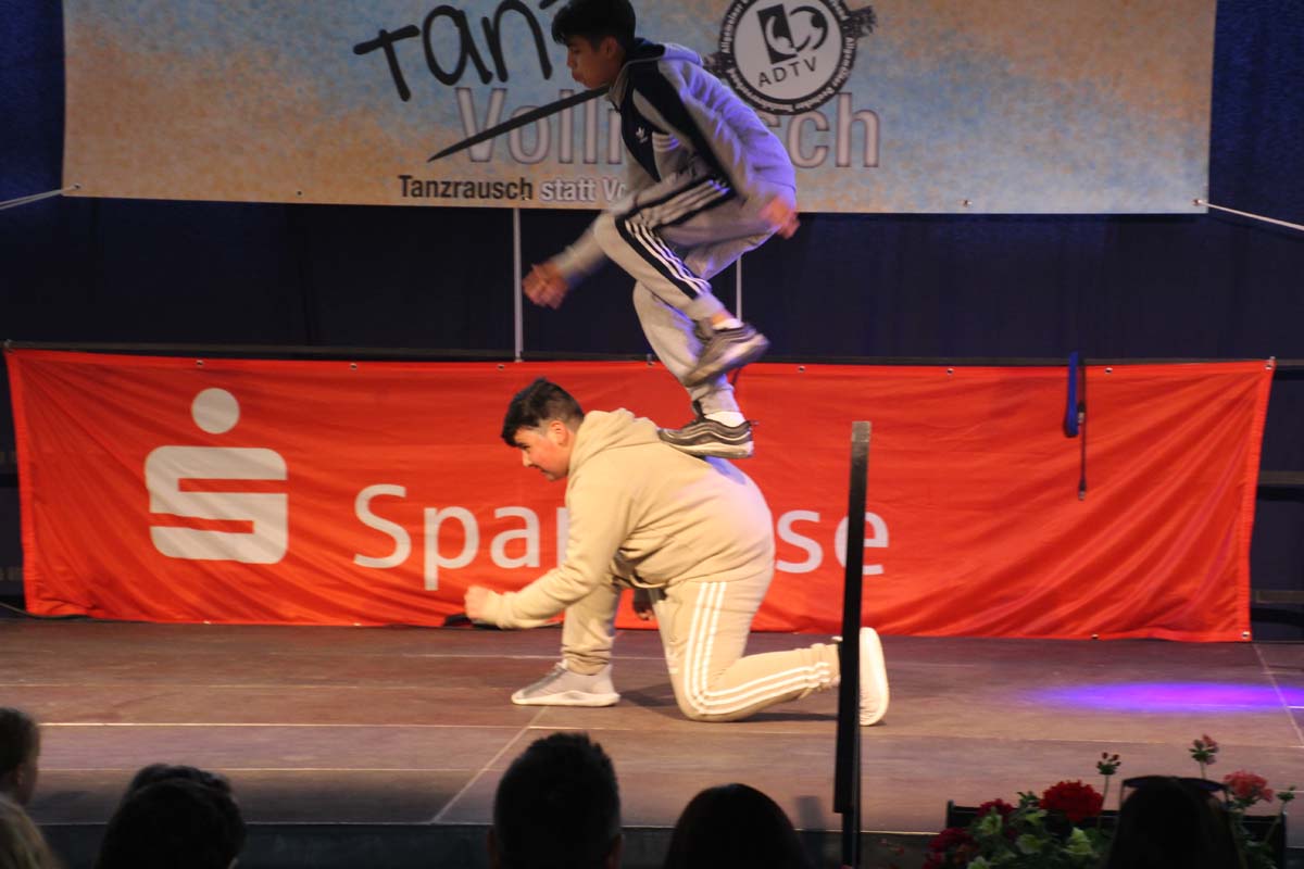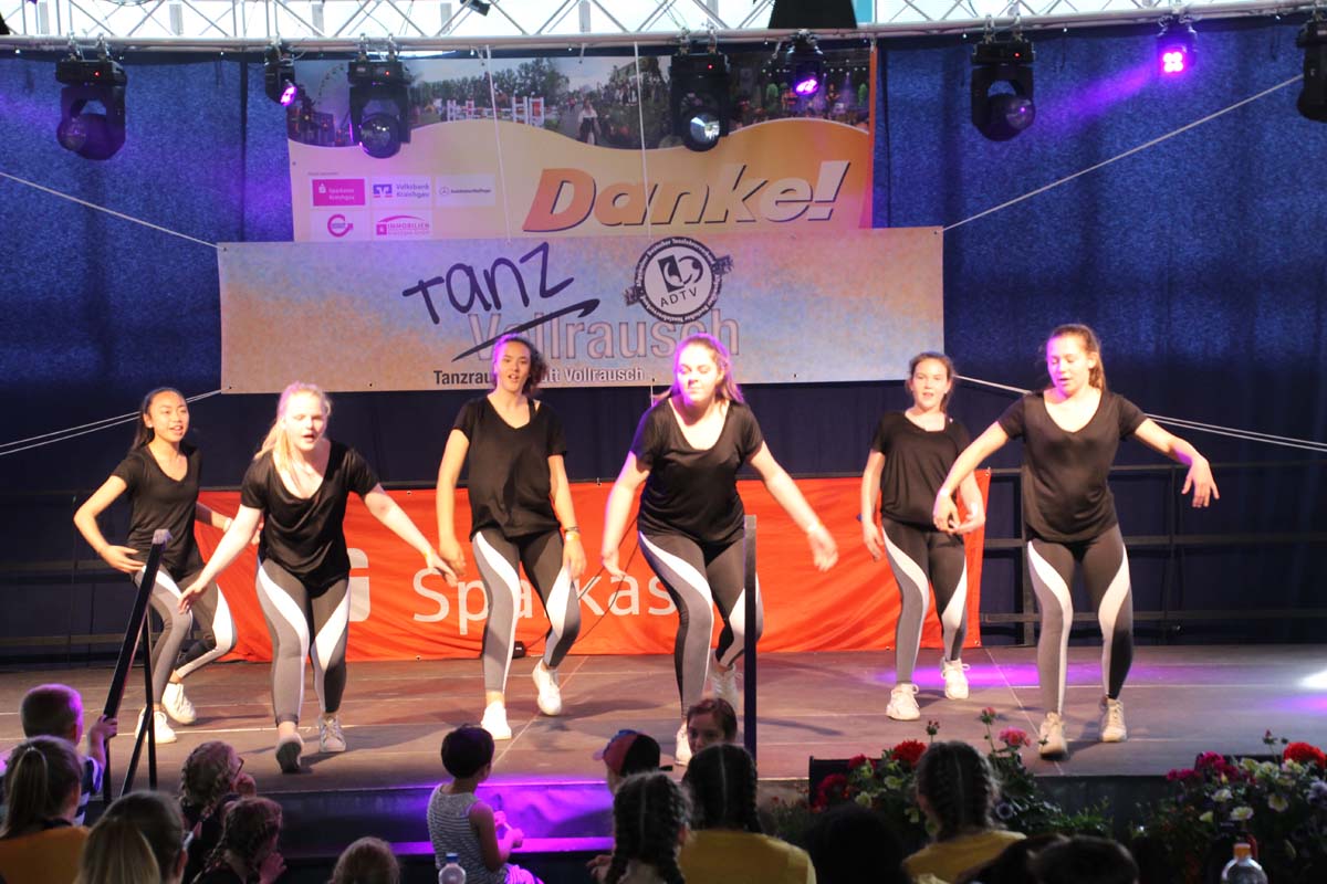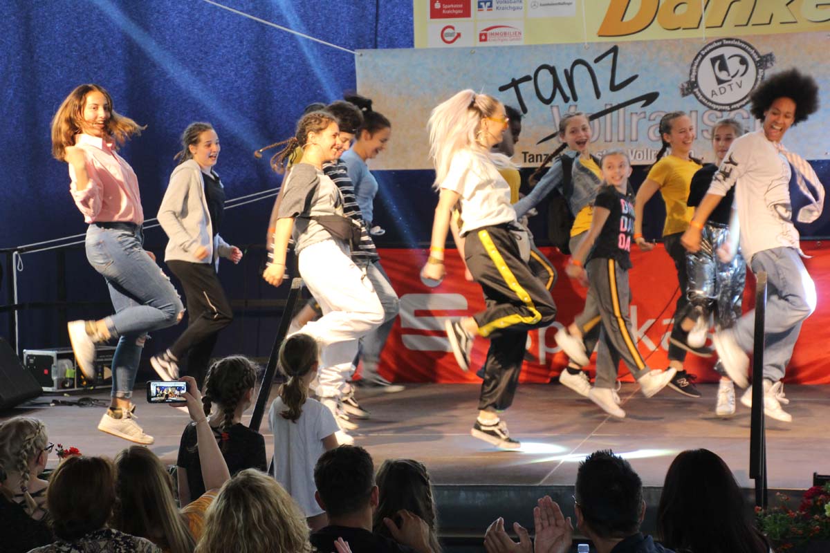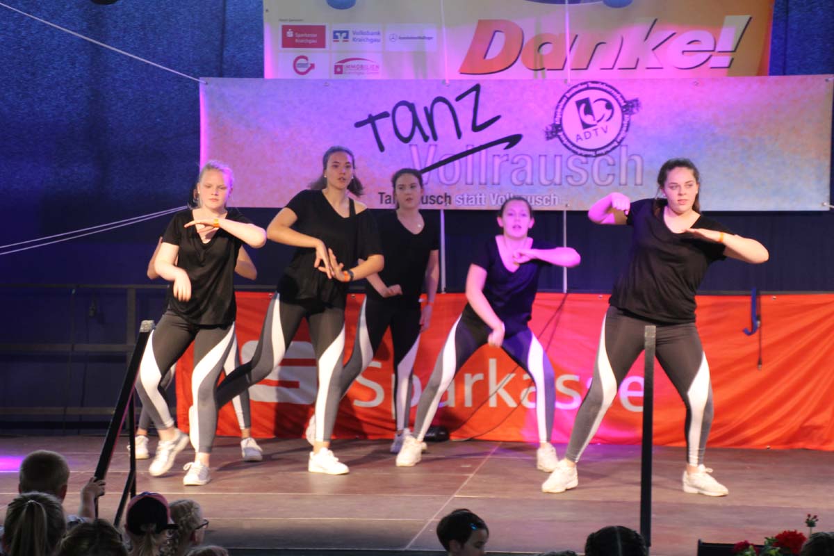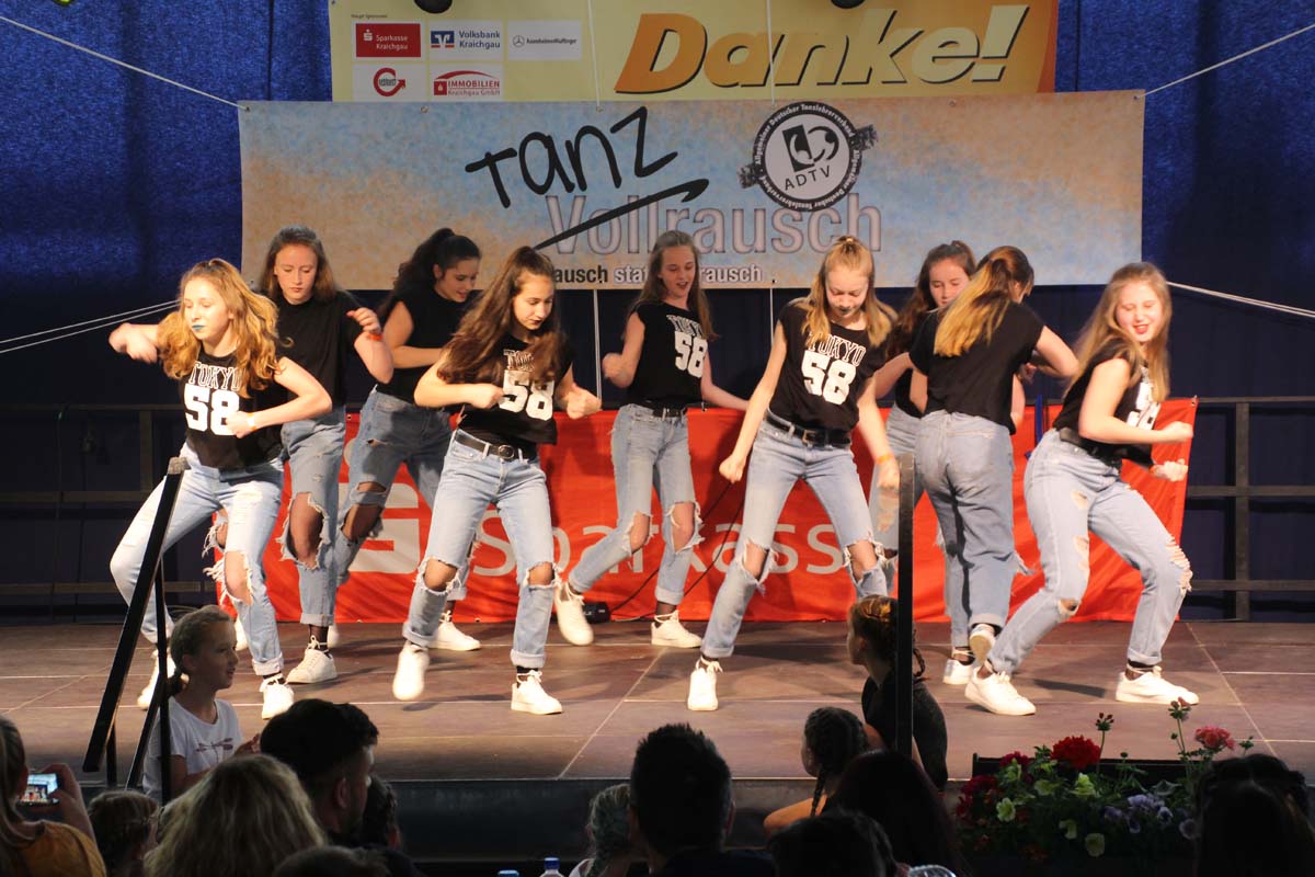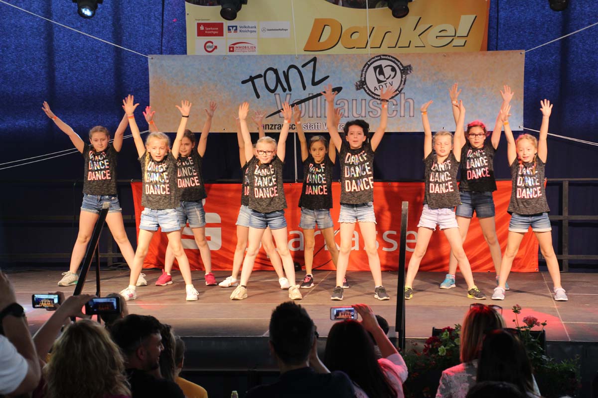 cr) Was für ein Tanzspektakel. Vor acht Jahren hatte man diese Tanzrausch statt Vollrausch Party mit 30 Teilnehmern angefangen. Inzwischen besteht das Teilnehmerfeld aus über 150 Startern. Und die machen nicht nur eine riesen Show auf der Bühne sondern sorgen auch für richtig Stimmung im Saal. Auch die Jury hielt es nicht auf ihren Stühlen aus. Das besondere an den Teilnehmern ist, sie sind wie eine grosse Familie. Auch wenn in diesem Jahr die Suchtprävention mit dem Rauschparcour etwas in den Hintergrund gerückt ist, die Message kam rüber und wurde verstanden. Man kann dem Organisationsteam des Tanzcentrum Sinsheim nur gratulieren für diese grossartige Veranstaltung zum Fohlenmarkt. Anna Stegmaier machte als Moderatorin einen grossen Job. Zum Schluss gab es noch einen grossen Spendenscheck von 1500 Euro an den Kinderhilfefond, der sich aus den Startgeldern der letzten 2 Jahre und einer Aufrundung durch die Sparkasse ergab.