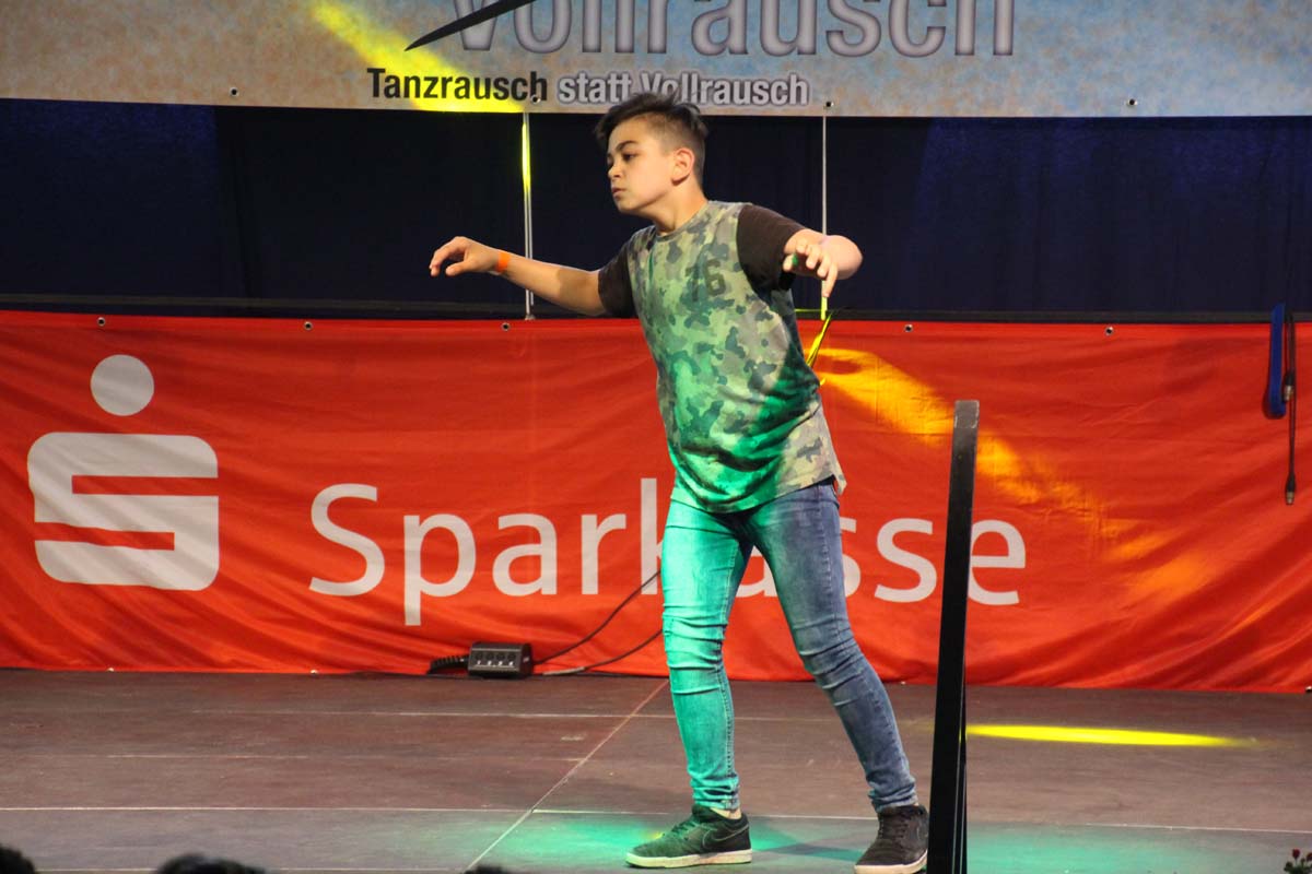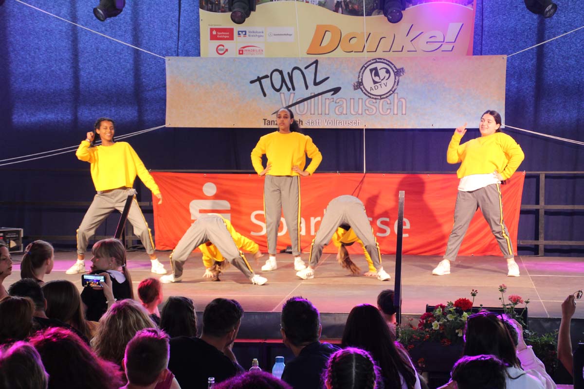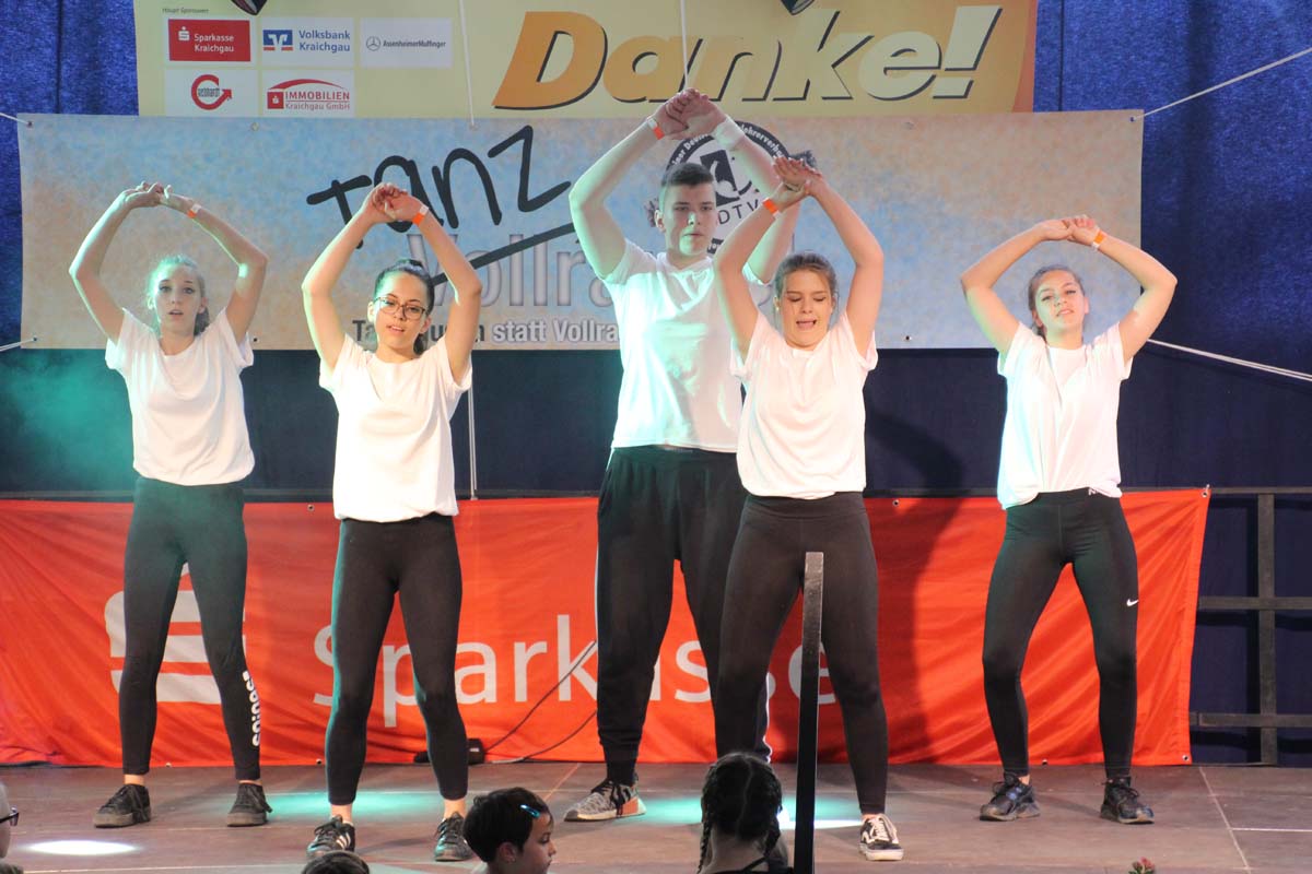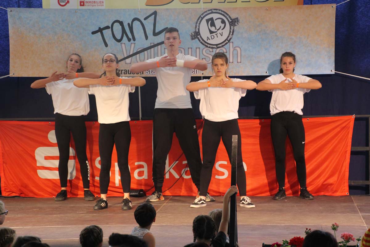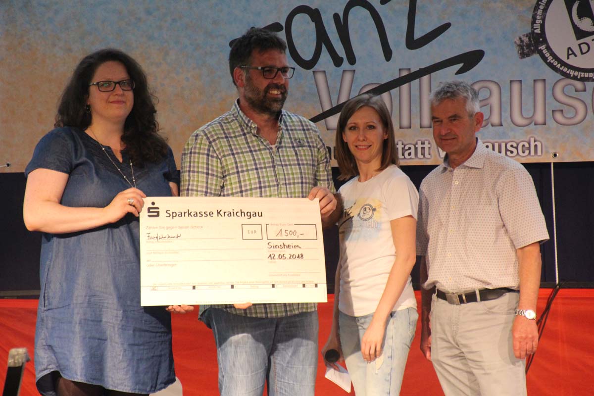 cr) Was für ein Tanzspektakel. Vor acht Jahren hatte man diese Tanzrausch statt Vollrausch Party mit 30 Teilnehmern angefangen. Inzwischen besteht das Teilnehmerfeld aus über 150 Startern. Und die machen nicht nur eine riesen Show auf der Bühne sondern sorgen auch für richtig Stimmung im Saal. Auch die Jury hielt es nicht auf ihren Stühlen aus. Das besondere an den Teilnehmern ist, sie sind wie eine grosse Familie. Auch wenn in diesem Jahr die Suchtprävention mit dem Rauschparcour etwas in den Hintergrund gerückt ist, die Message kam rüber und wurde verstanden. Man kann dem Organisationsteam des Tanzcentrum Sinsheim nur gratulieren für diese grossartige Veranstaltung zum Fohlenmarkt. Anna Stegmaier machte als Moderatorin einen grossen Job. Zum Schluss gab es noch einen grossen Spendenscheck von 1500 Euro an den Kinderhilfefond, der sich aus den Startgeldern der letzten 2 Jahre und einer Aufrundung durch die Sparkasse ergab.