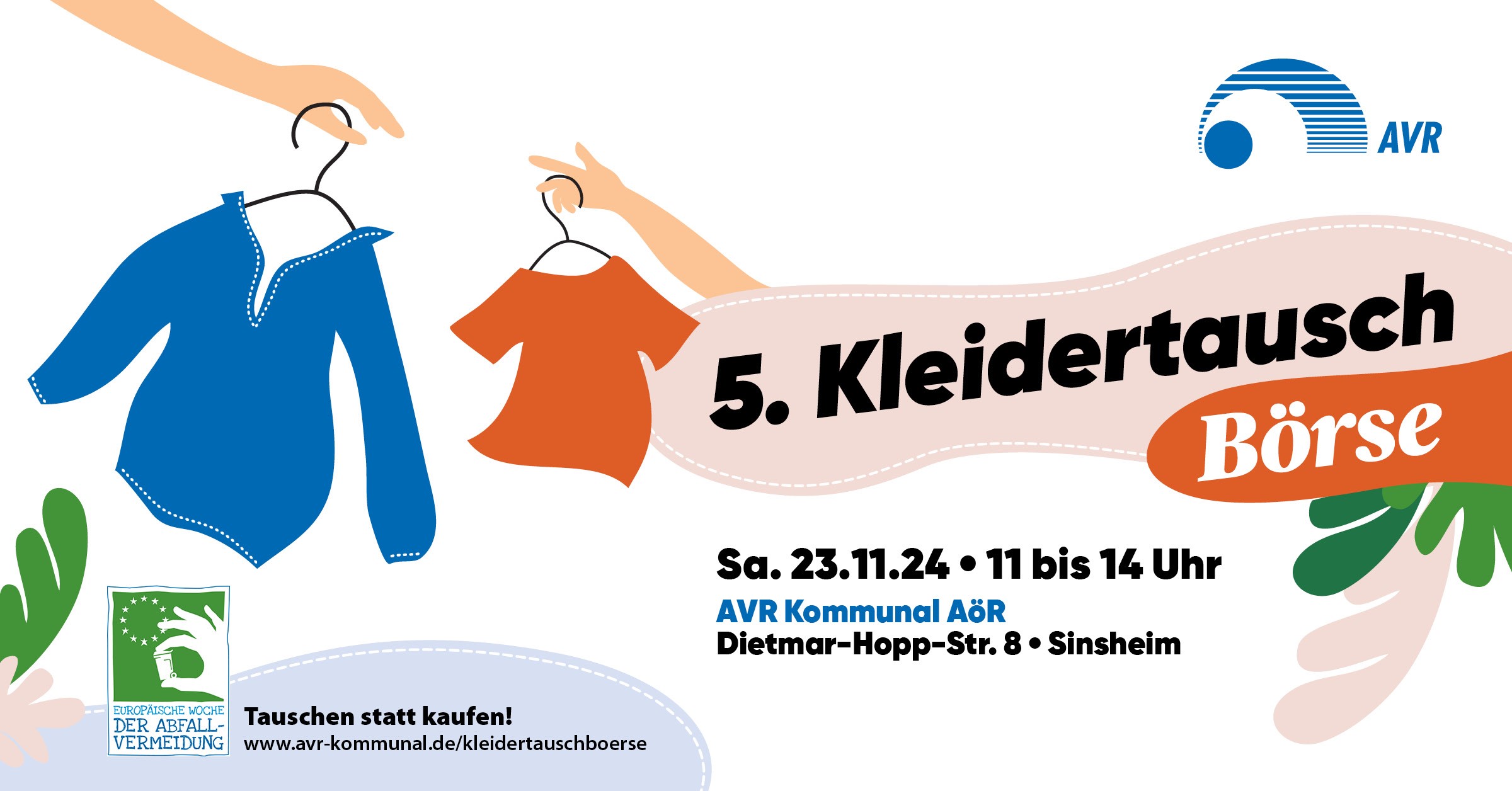 Am Samstag, den 23. November 2024, lädt die AVR Kommunal von 11:00 bis 14:00 Uhr zur fünften Auflage ihrer beliebten Kleidertauschbörse ein.