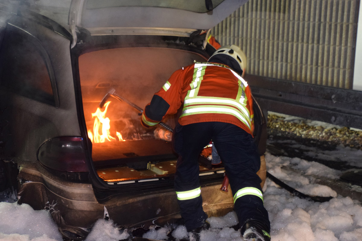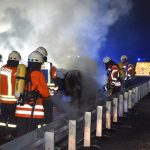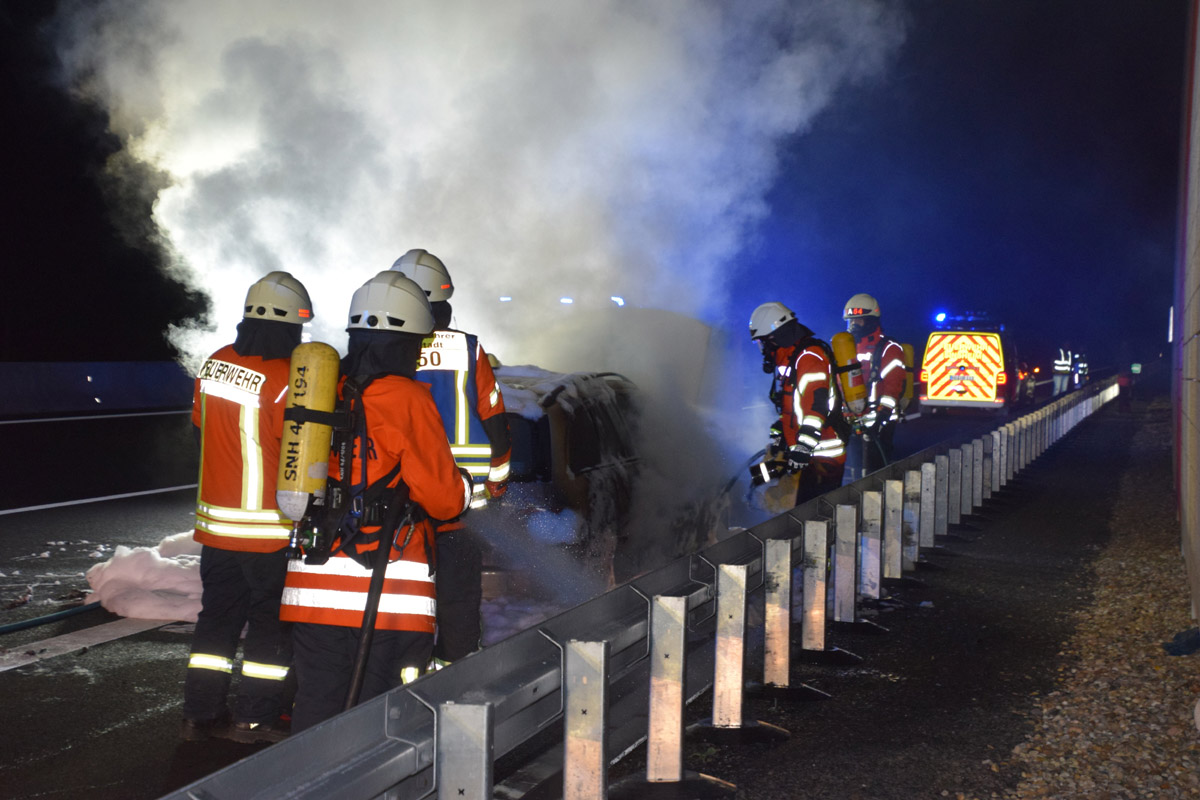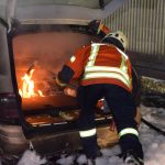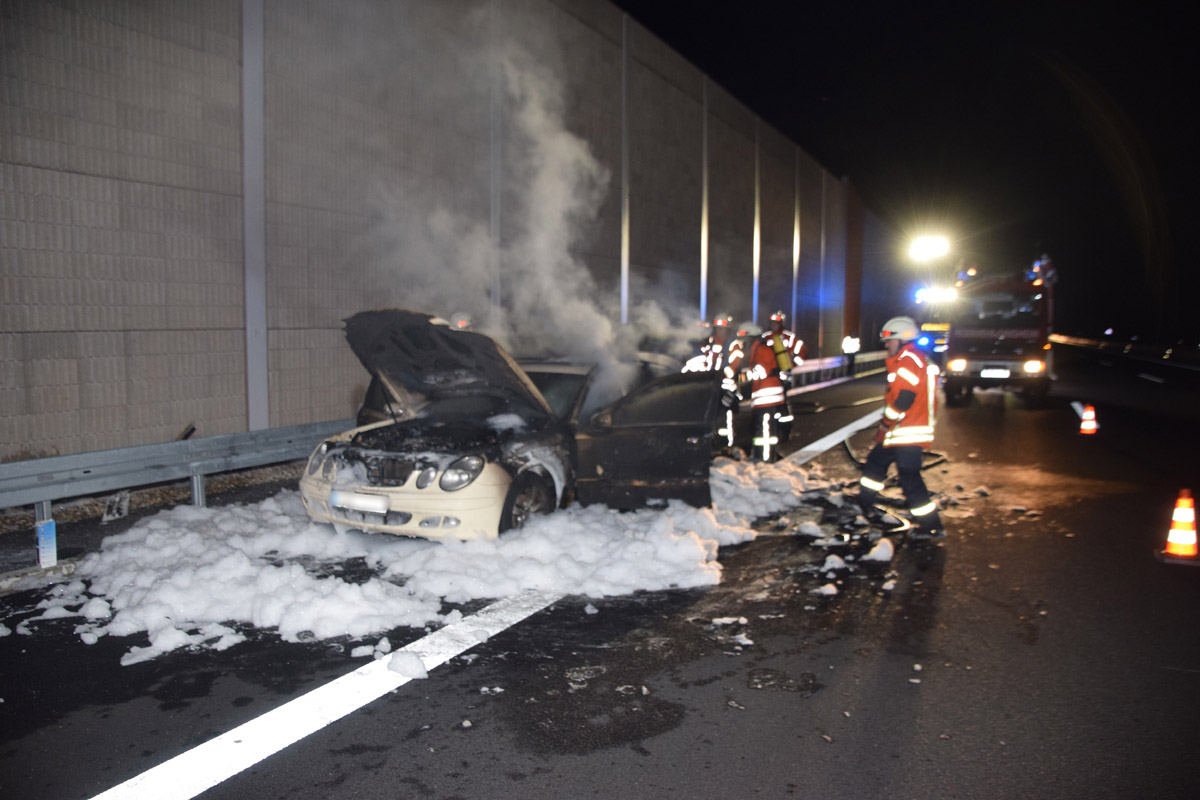A6/Sinsheim. (red) Glücklicherweise ohne Verletzte blieb ein Fahrzeugbrand vergangene Samstagnacht auf der A 6. Der Fahrer eines Sinsheimer Taxiunternehemns hatte gegen 23.20 Uhr die Autobahn zwischen den Anschlussstellen Sinsheim und Wiesloch/Rauenberg in Richtung Mannheim befahren, als sein Wagen plötzlich zu qualmen und schließlich zu brennen beginnt. Der Mann handelt geistesgegenwärtig und steuert auf den Standstreifen. Dort angekommen verlassen er und seine drei Fahrgäste den Wagen und retten sich hinter die Leitplanke. Die Freiwillige Feuerwehr Sinsheim war schnell mit vier Fahrzeugen vor Ort und legte einen Schaumteppich um den in Vollbrand stehenden Wagen. Die Nachlöscharbeiten dauerten bis gegen 00.30 Uhr an. Während der Lösch- und Bergungsarbeiten musste der rechte Fahrstreifen gesperrt werden.