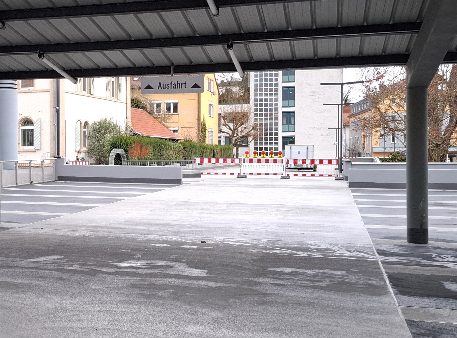 Die Mängelbeseitigung im Parkhaus Grabengasse musste zwischenzeitlich witterungsbedingt eingestellt werden. Etwa die Hälfte des Obergeschosses konnte aber soweit fertiggestellt werden, dass auf diesem geparkt werden kann. Die Arbeiten werden dann im Frühjahr endgültig abgeschlossen.