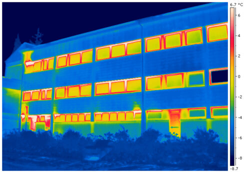 Mit Hilfe einer hochkomplexen Infrarotkamera werden Wärmebrücken und Wärmeverluste registriert, die entsprechenden Flächen sind auf den Bildern farblich dargestellt. Auf der Grundlage des Energieberichts können dann konkrete und gezielte Energiesparmaßnahmen eingeleitet werden.