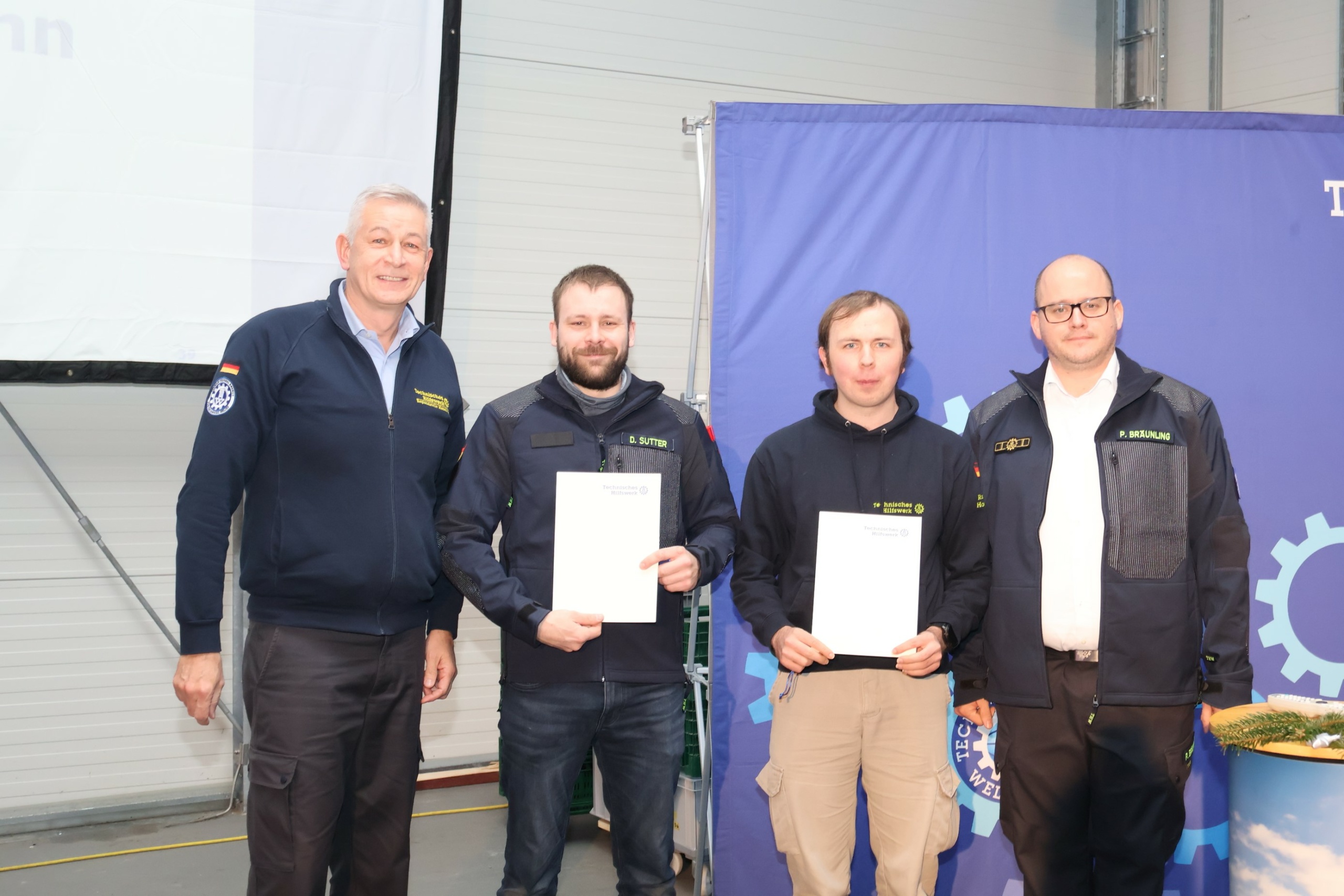 - Dennis Sutter und Raphael Hofmann wurden mit dem Helferzeichen in Gold für ihre Verdienste in der Ausbildung neuer Einsatzkräfte geehrt.