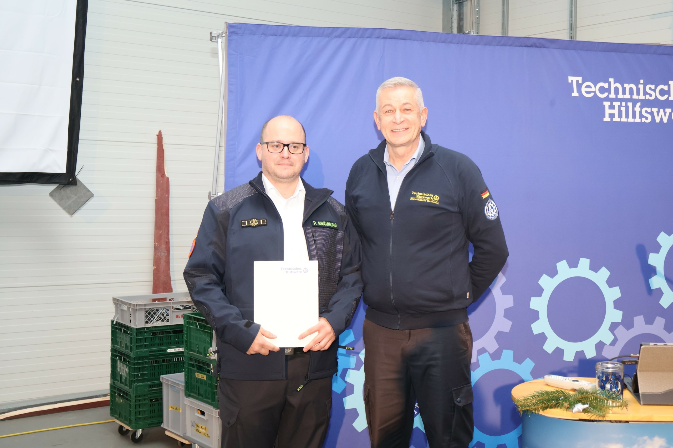 - Als Höhepunkt wurde Patrick Bräunling mit dem Helferzeichen in Gold ausgezeichnet, eine besondere Anerkennung für seine Leistungen als Ortsbeauftragter.